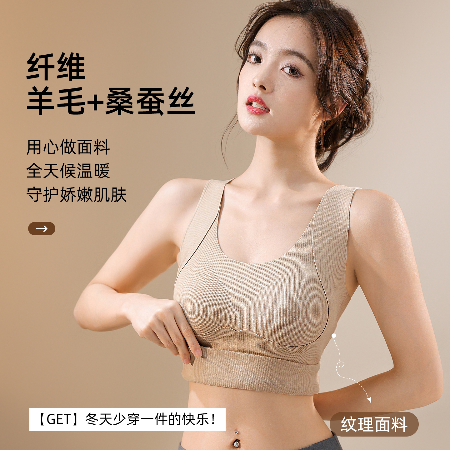 蝶安芬无痕保暖背心女打底春夏加绒加厚内搭带胸垫一体式 发热内衣