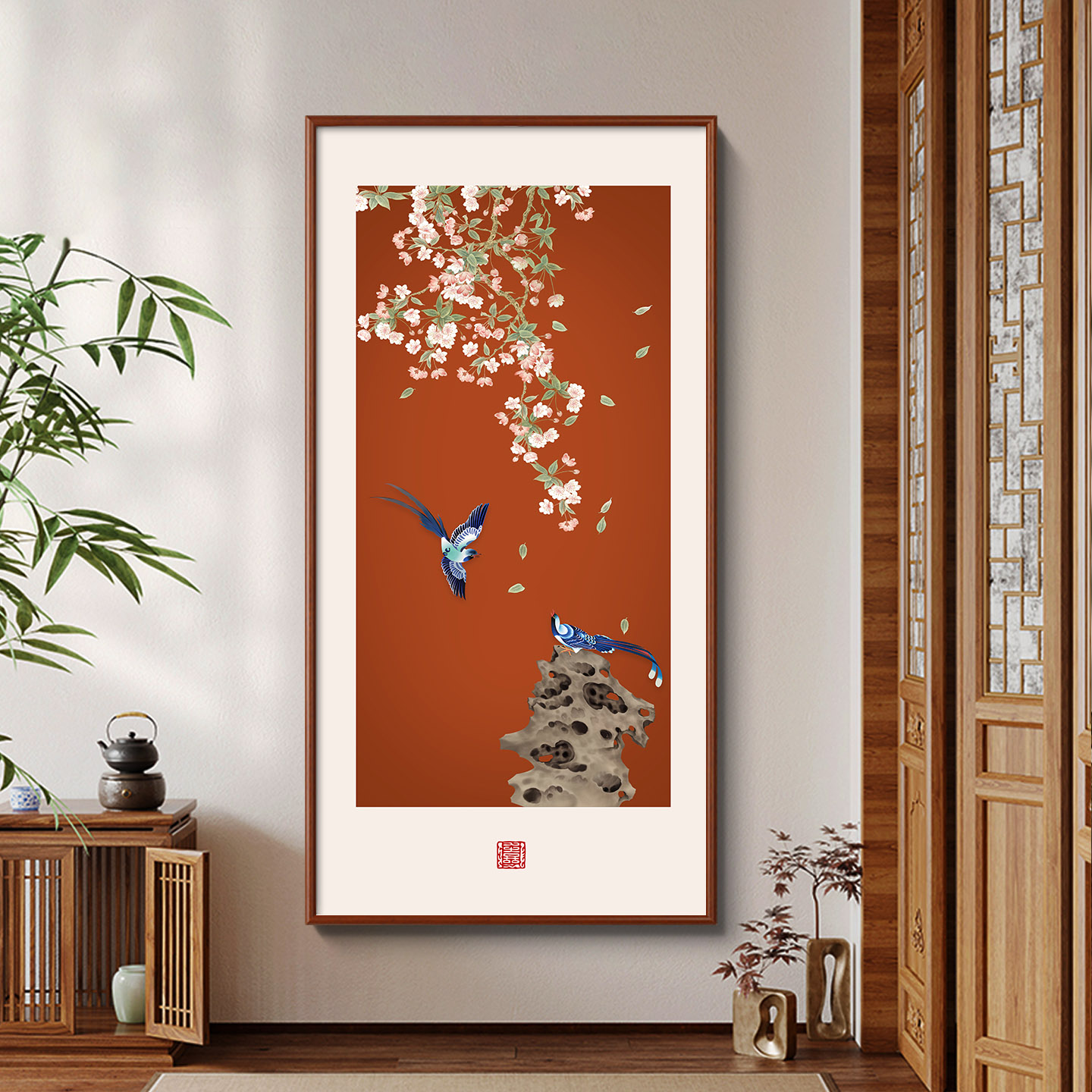 玄关卷轴挂画 饰画办公室字画竖版 国画旭日东升山水画新中式 客厅装