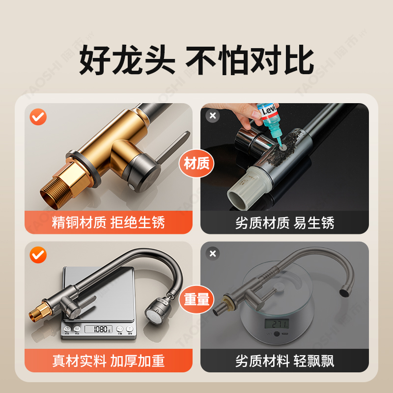 精铜厨房水龙头冷热家用水槽洗菜洗手盆洗碗池旋转不锈钢单冷防溅