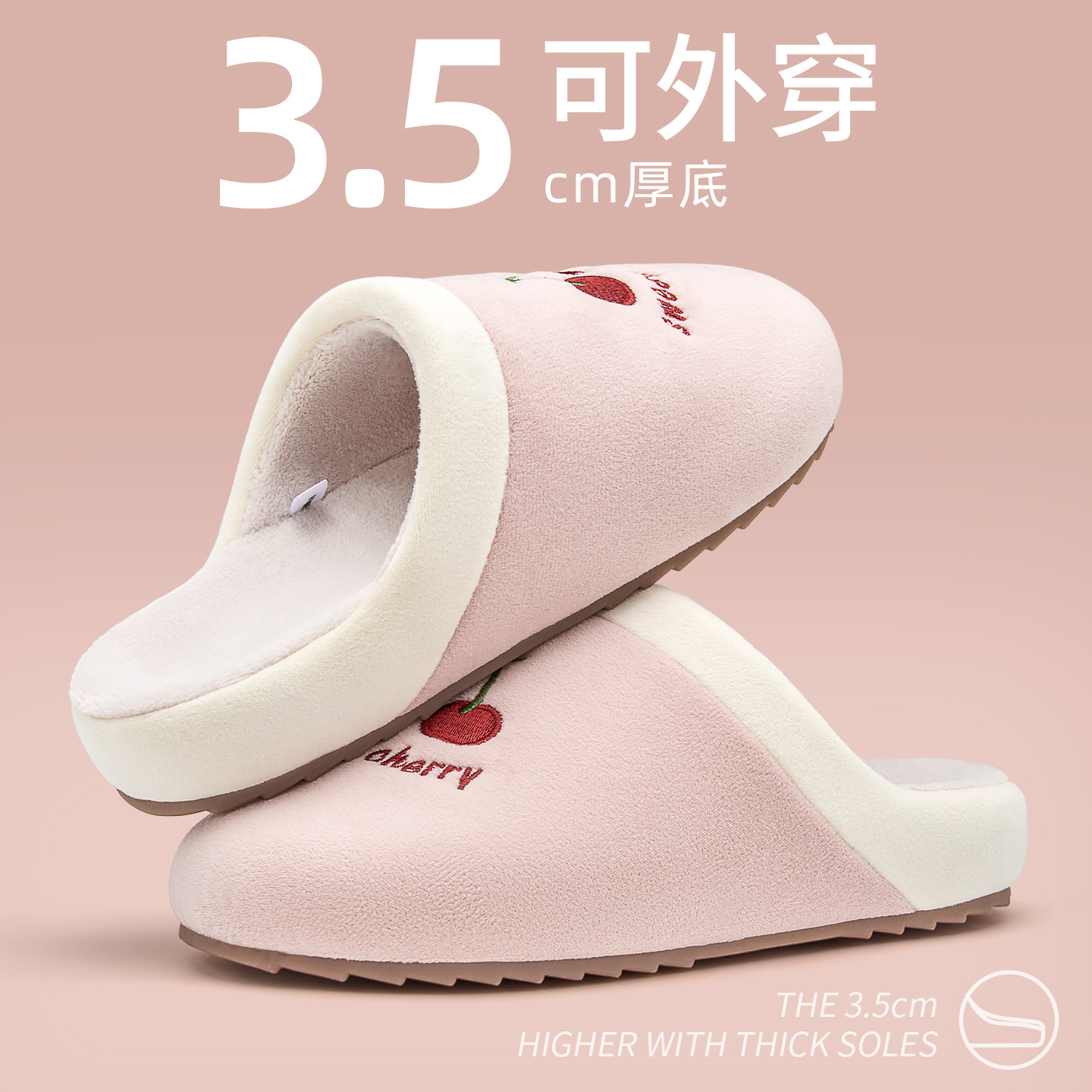 室内家居可爱保暖樱桃小狗情侣毛绒拖鞋 棉拖鞋 2025新款 秋冬季 女款