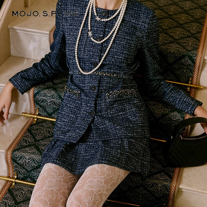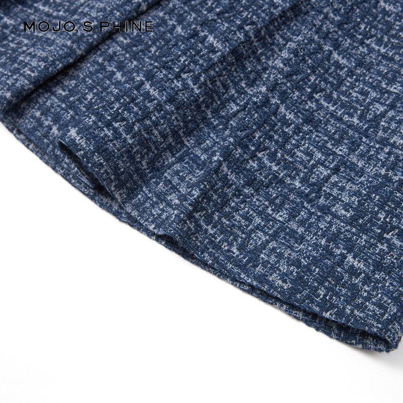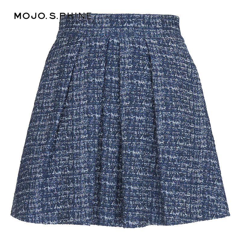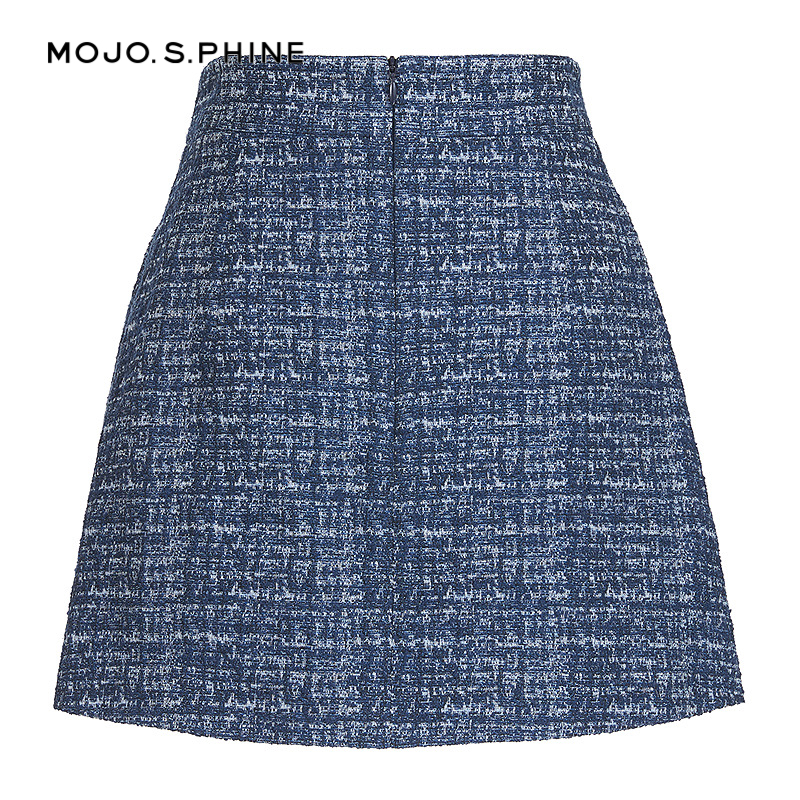 MOJO莫佐2025冬新款 蓝格纹提花半身裙女复古灵动高腰A字百褶半裙