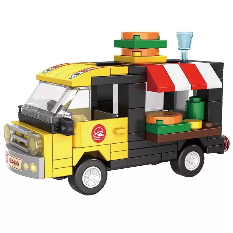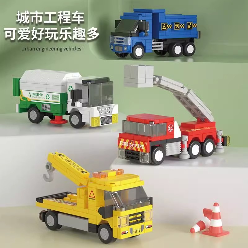 城市迷你小型汽车乐积木儿童益智玩具小颗粒拼装 公交警车消防模型