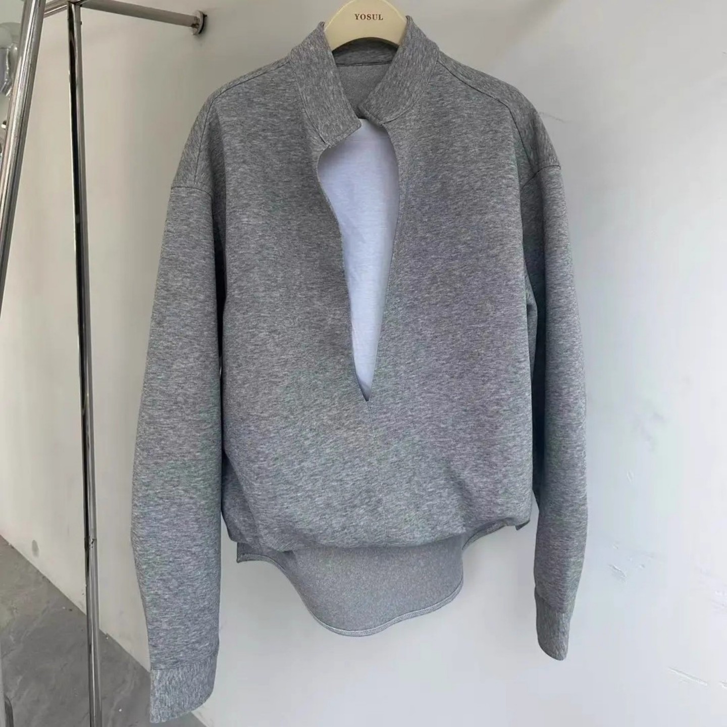 慵懒风休闲运动服 套装 花灰色假两件v领卫衣卫裤 男青少年酷帅秋装