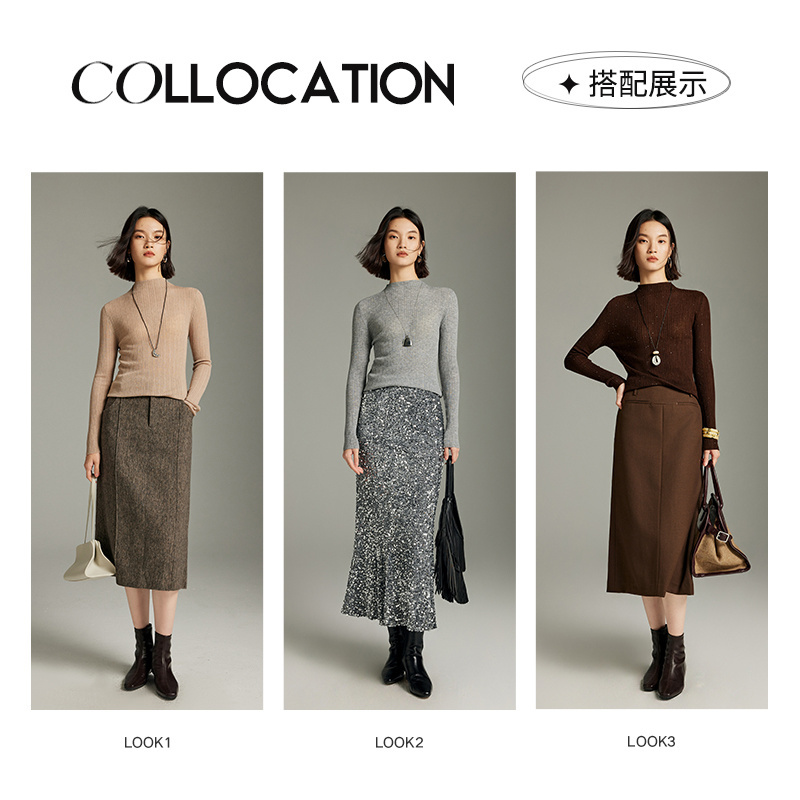 羊毛上衣 2025新款 打底衫 女半高领黑色内搭高级感秋冬针织毛衣女装