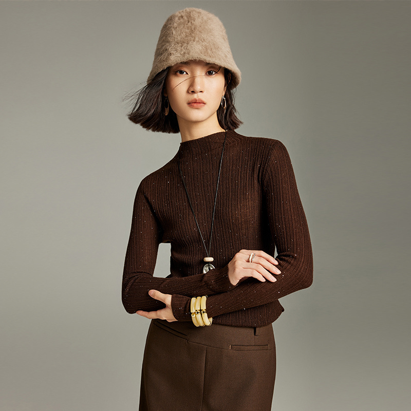 无缝一体修身 2025新款 打底毛衣秋冬女 高级感内搭半高领针织衫 法式