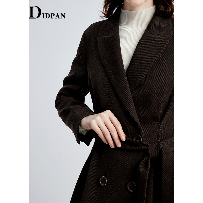 新款 2025冬季 秋水伊人优雅翻领毛呢外套 通勤大衣 100%绵羊毛