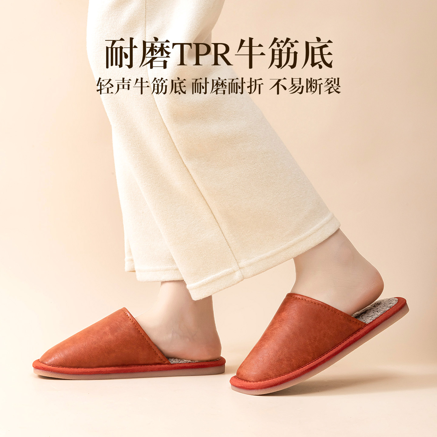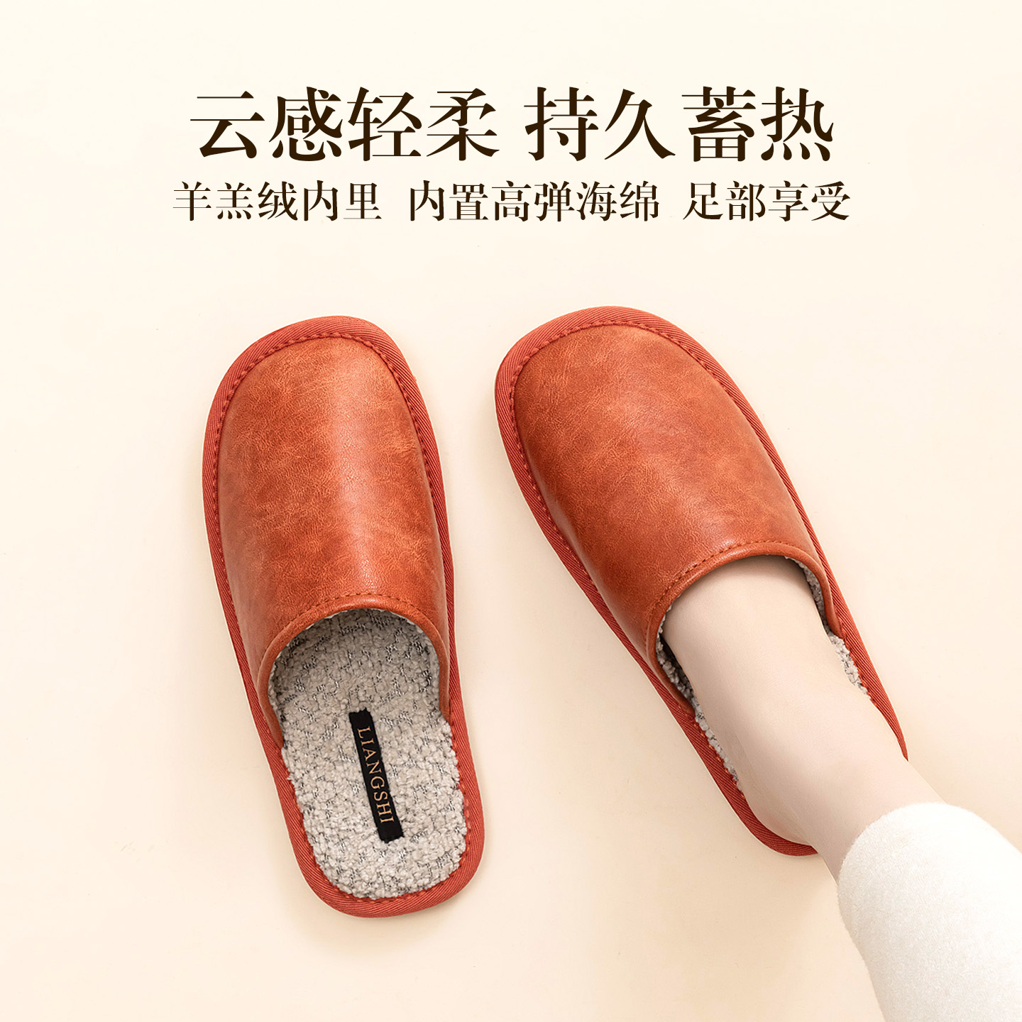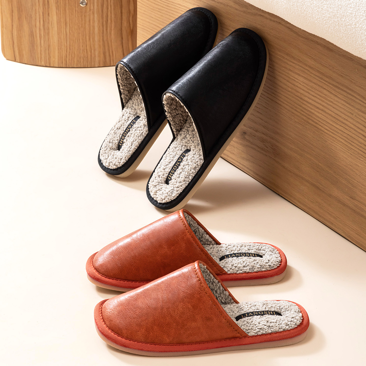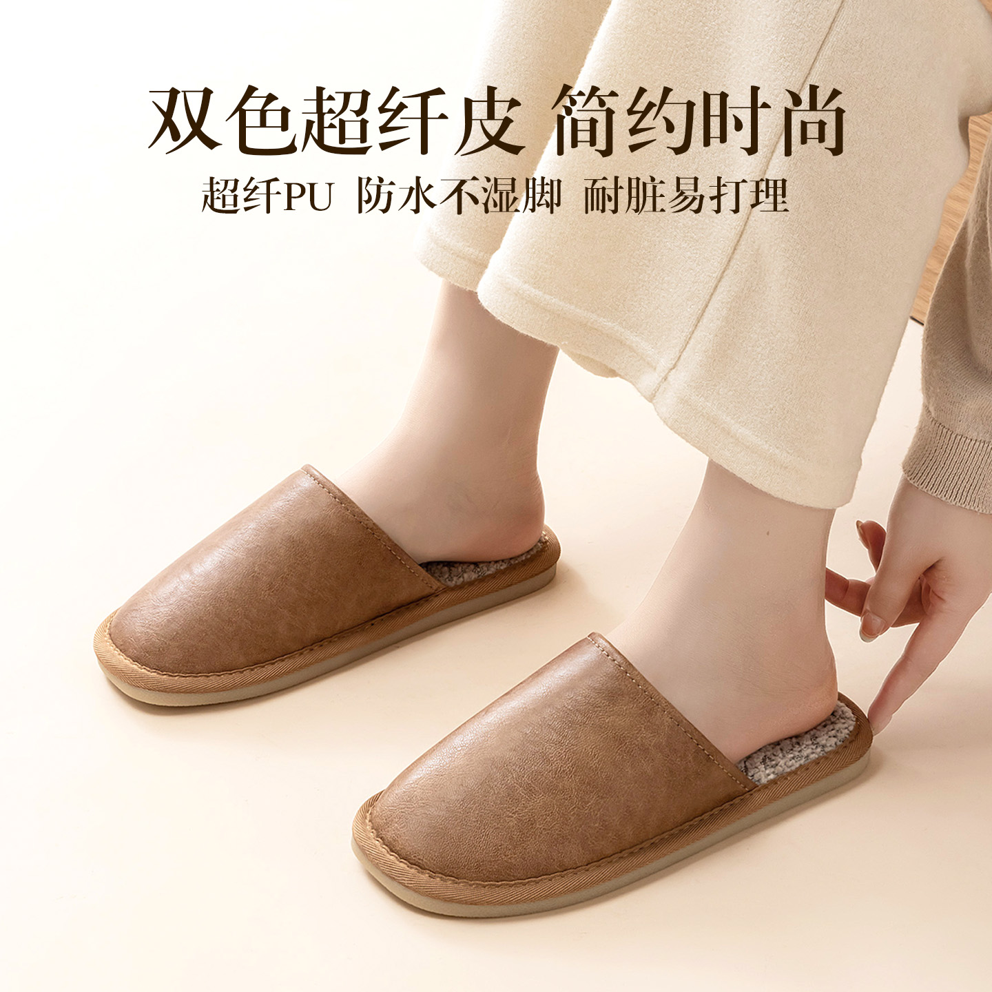 冬季 简约包头皮面拖鞋 居家情侣家居室内木地板防滑保暖舒适棉拖鞋