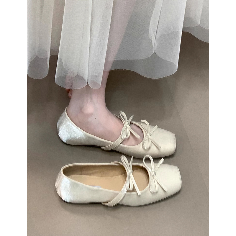 仙女温柔玛丽珍鞋 女2025夏新款 浅口单鞋 内增高蝴蝶结方头芭蕾舞鞋