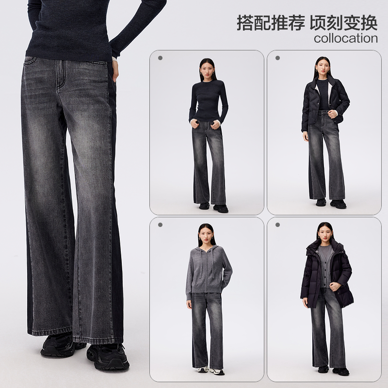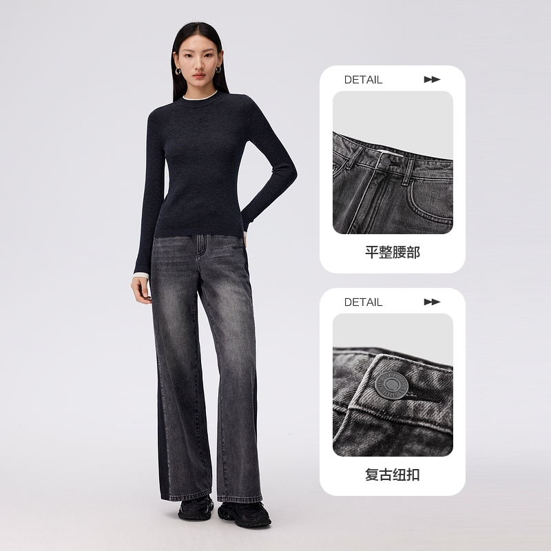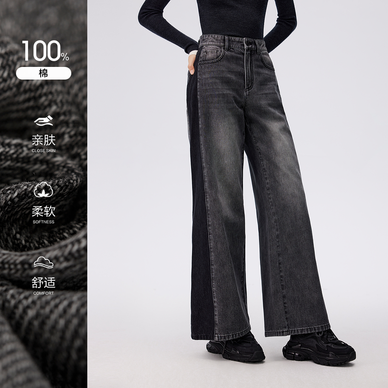 子纯棉2025秋冬款 水云间水洗牛仔裤 女复古做旧水泥灰直筒阔腿长裤