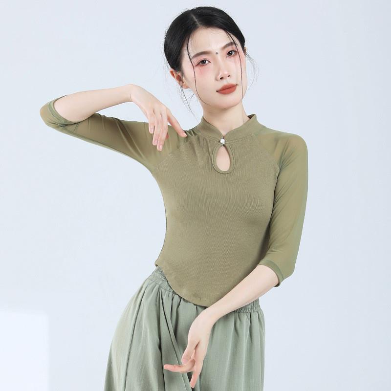 练 上衣中国风现代舞民族舞服装 高货速发古典舞服拼接纱袖 气质修身