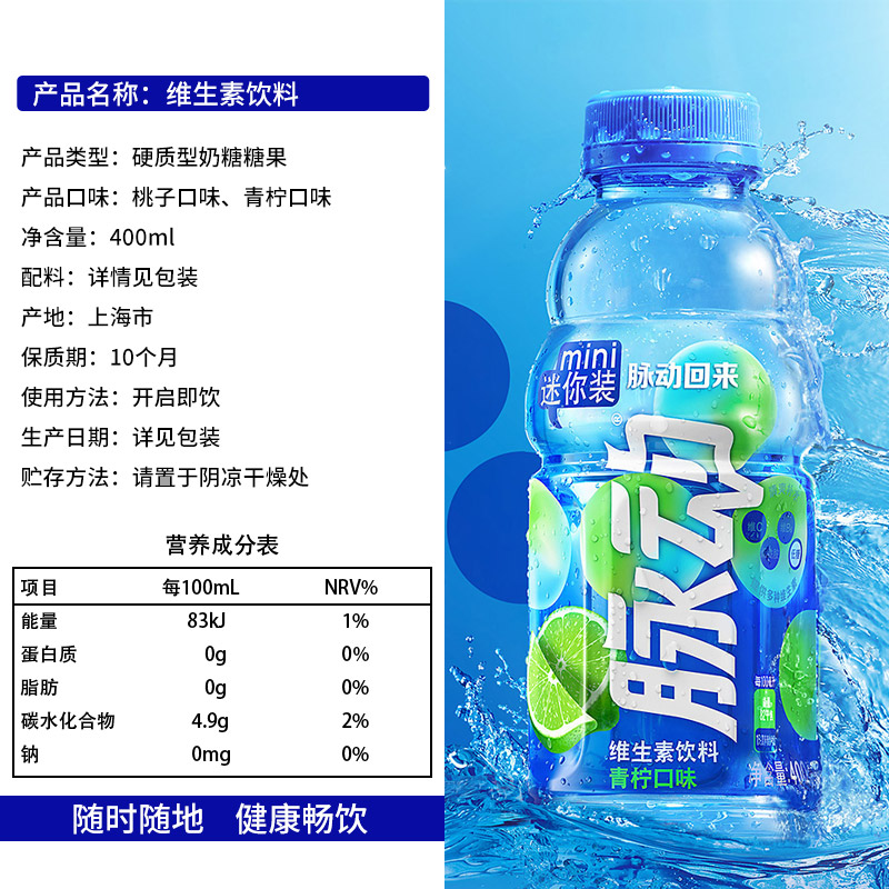 脉动饮料青柠桃子口味低糖维生素运动蛋白饮料夏季 清凉饮料