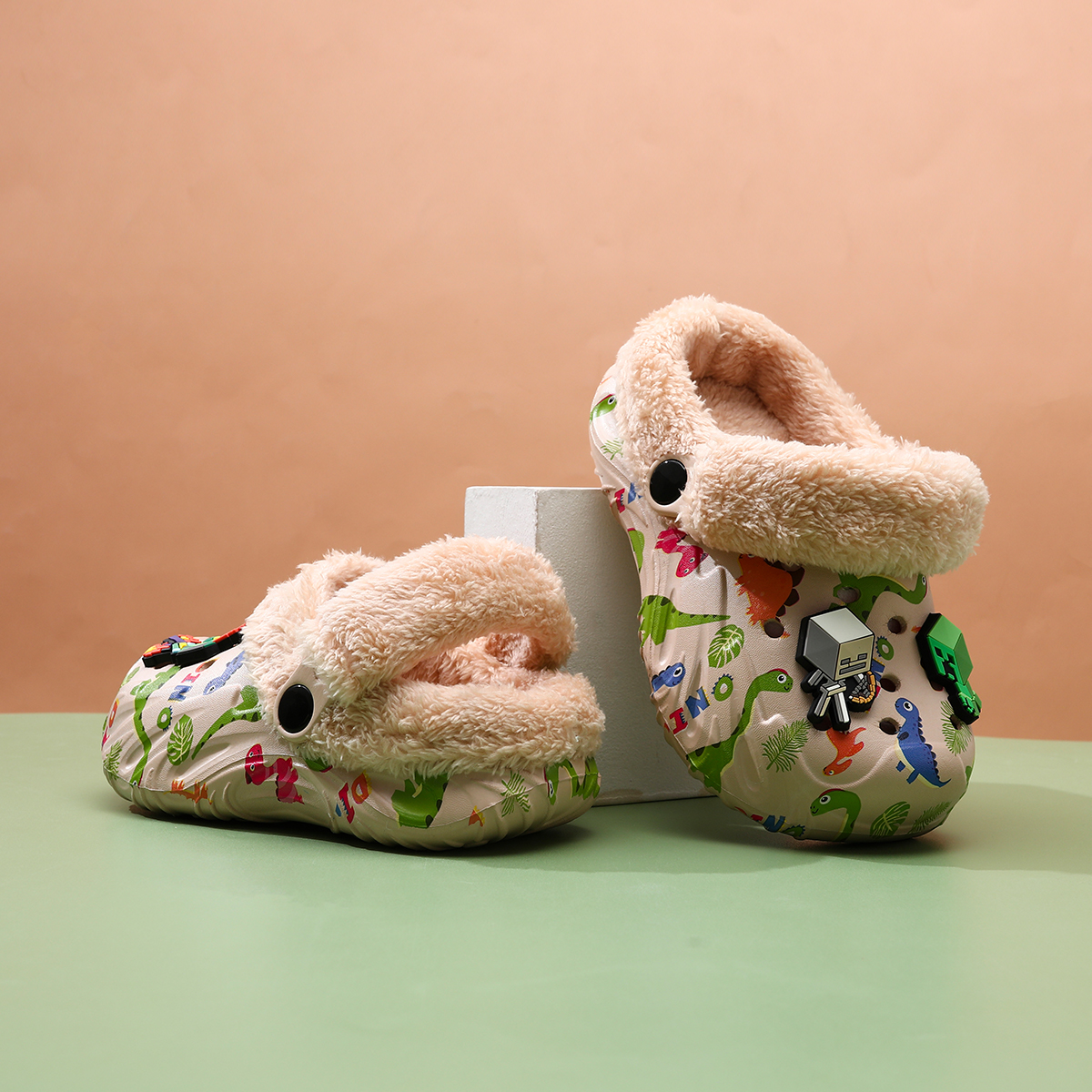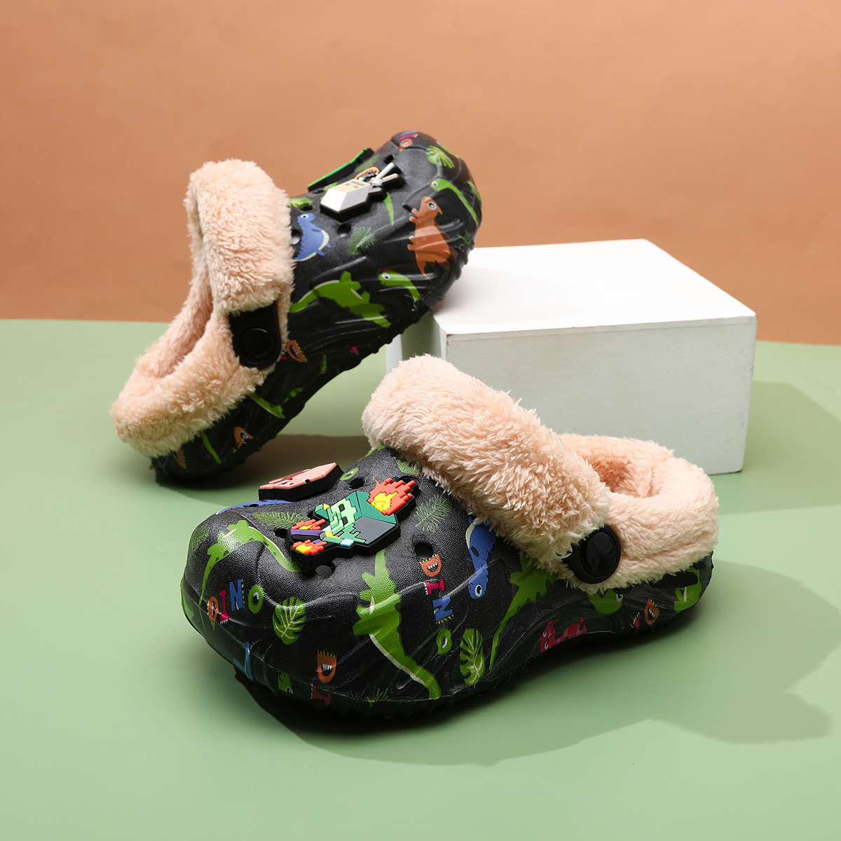 秋冬室内防滑洞洞鞋 我 2025新款 男童棉拖鞋 保暖加绒 世界儿童棉鞋