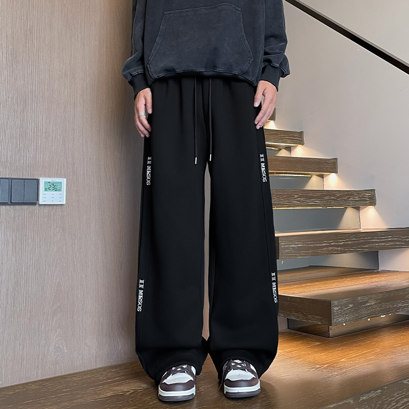新款 宽松阔腿直筒运动长裤 裤 休闲男生卫裤 子男潮牌美式 2025春秋季