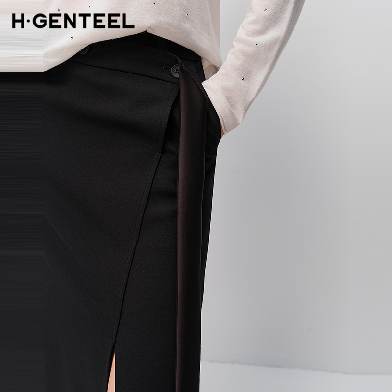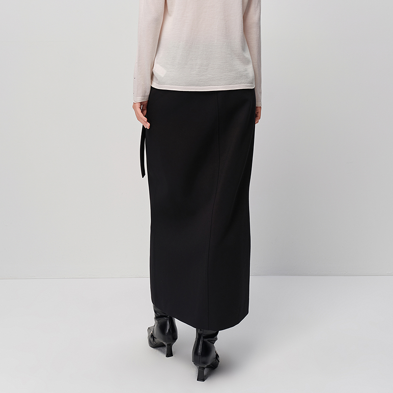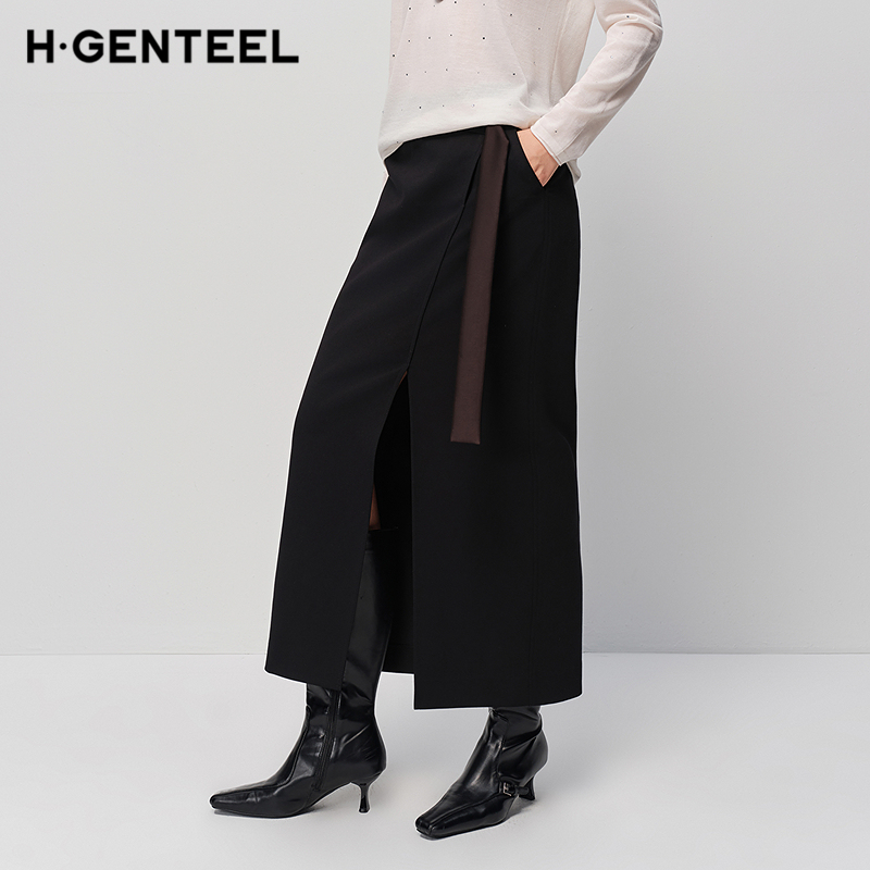 设计师款 不规则拼接绑带半身长裙18465928 佐丹奴复古格纹裙女新款