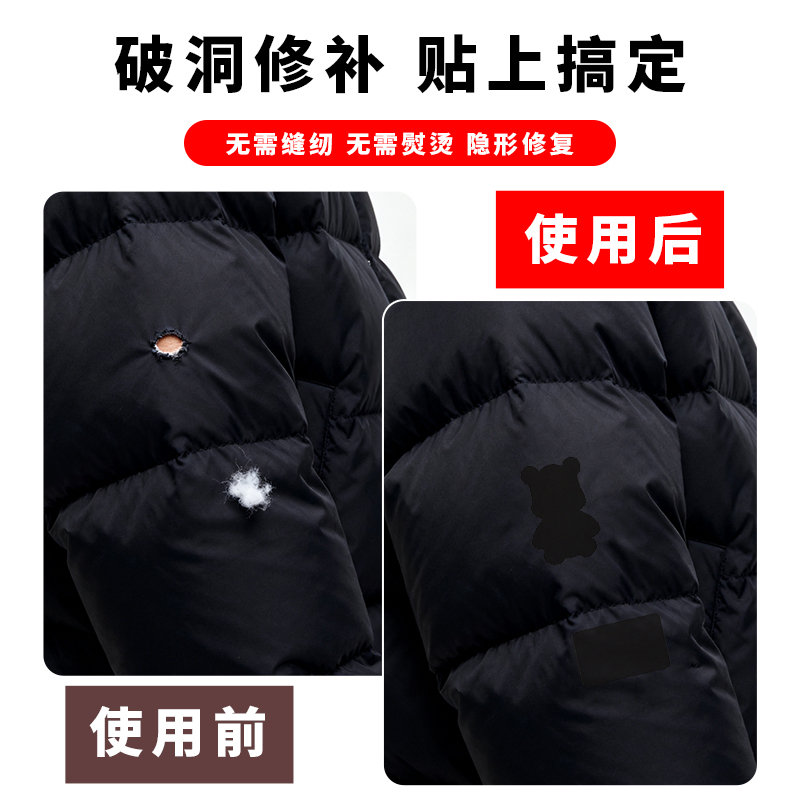 羽绒服布贴自粘无痕衣服补丁贴破洞修复贴布粘贴修补补贴可水洗黑