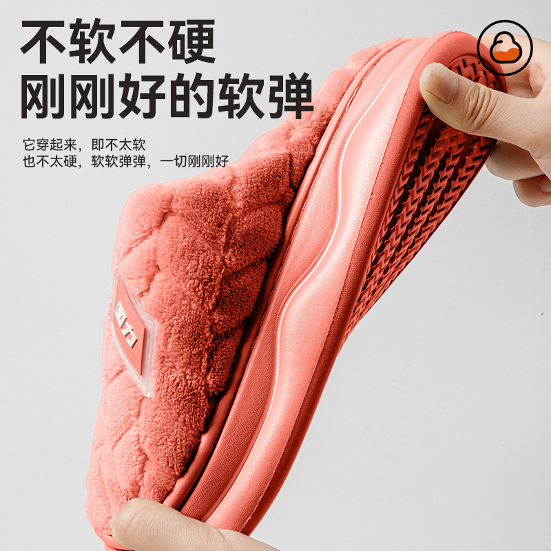 加绒加厚防滑棉鞋 新款 家居室内厚底 女2025秋冬季 回力毛绒棉拖鞋