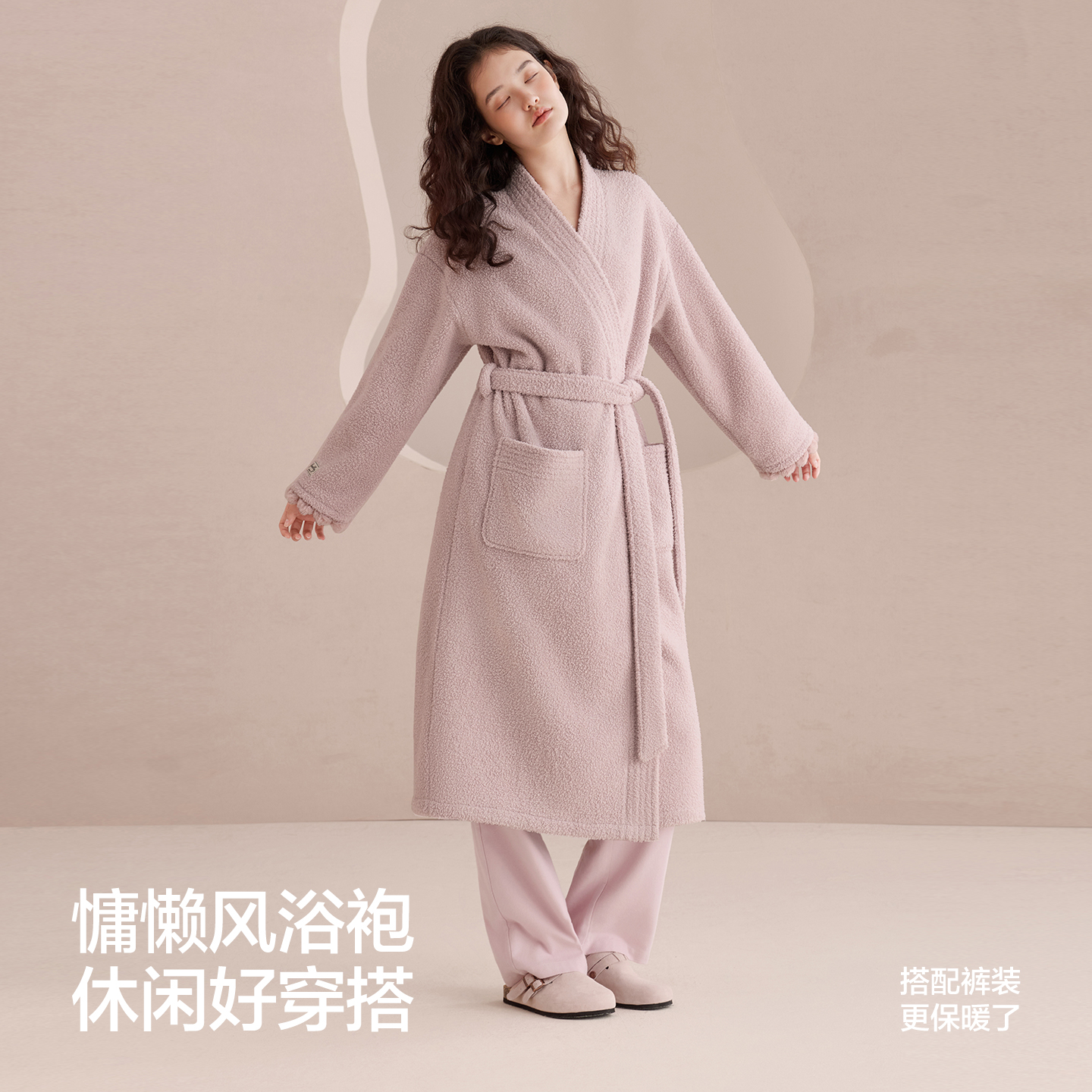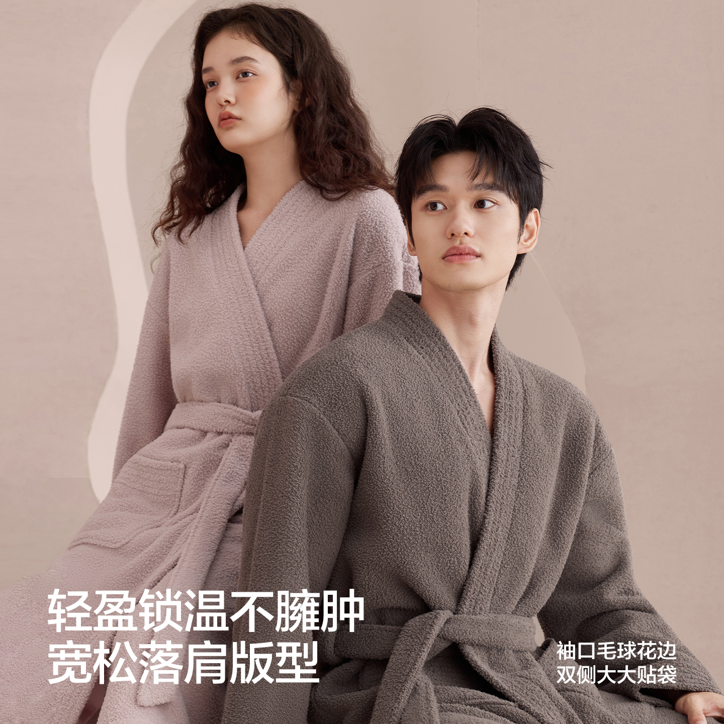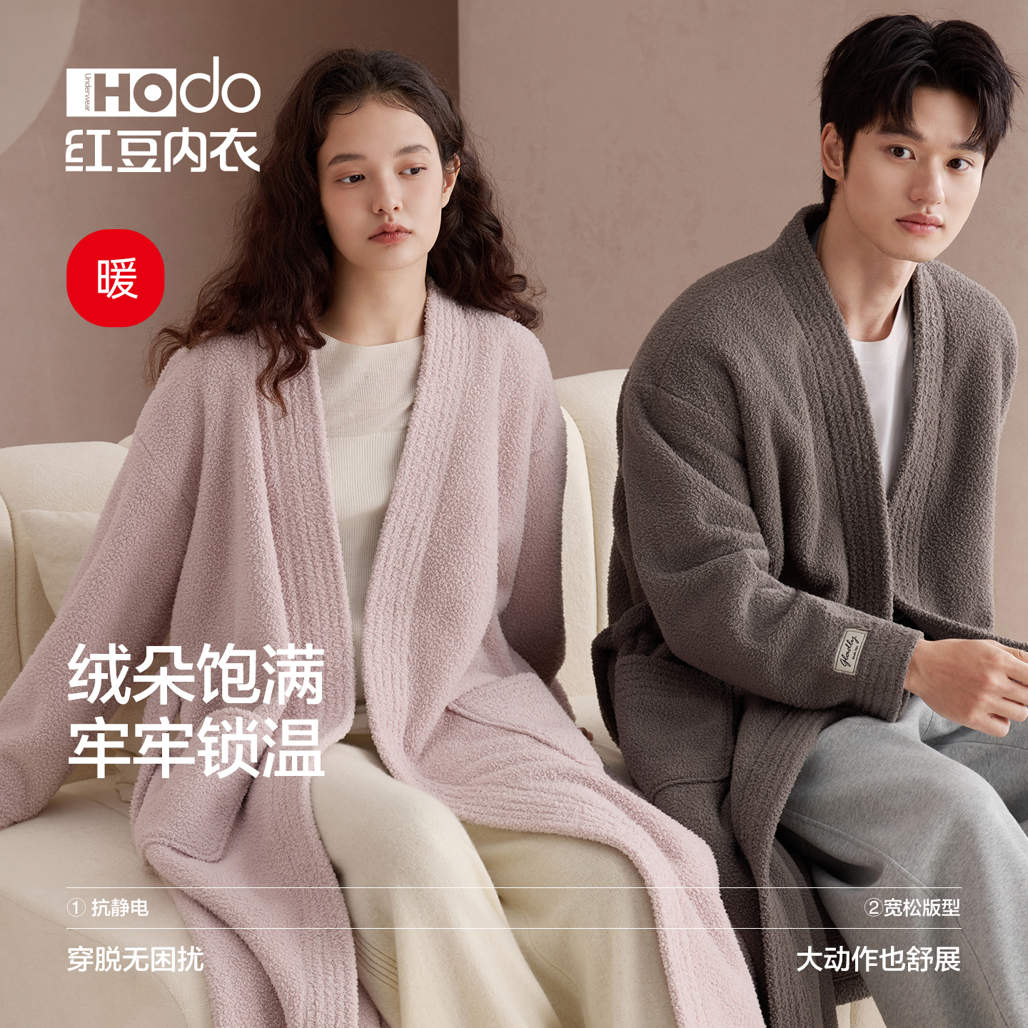 红豆情侣睡袍杨梅绒男女士加厚抗静电中长款 浴袍珊瑚绒睡衣家居服