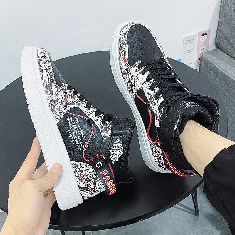 男鞋 子学生运动鞋 新款 皮面鞋 秋冬高帮休闲鞋 电池熊猫鸿星尔克板鞋