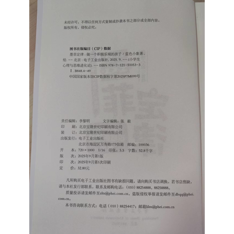 社新华书店正版 墨菲定律 小学生心理与思维进化论蓝色小象其它儿童读物电子工业出版 孩子 做一个积极乐观