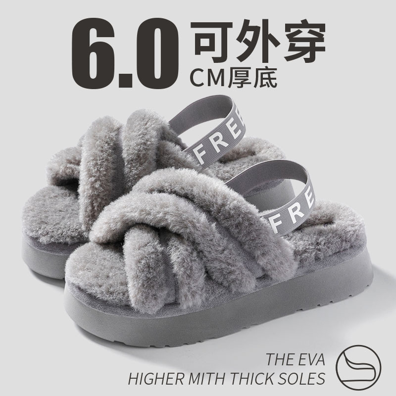毛毛鞋 外出厚底毛绒茸茸棉拖鞋 女外穿2025夏季 秋时尚 新款 增高爆款