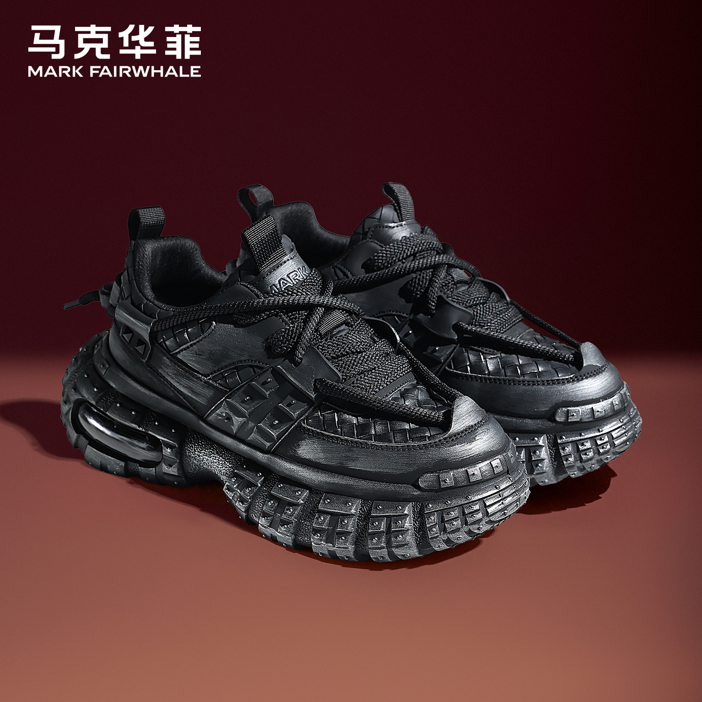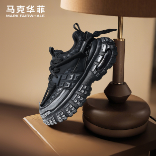 男增高运动鞋 男士 休闲鞋 马克华菲男鞋 子男款 老爹鞋 黑色鞋 2025新款