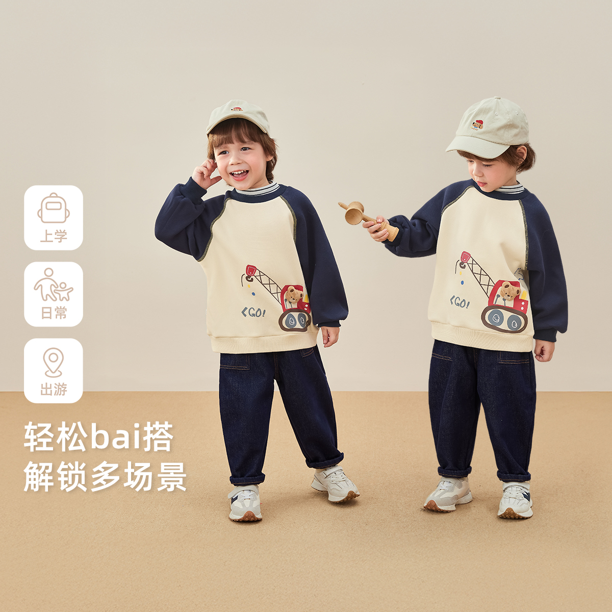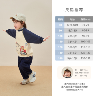 宝宝卡通拼接男小童加绒衣服儿童上衣 男童卫衣秋冬季 抑菌抗静电