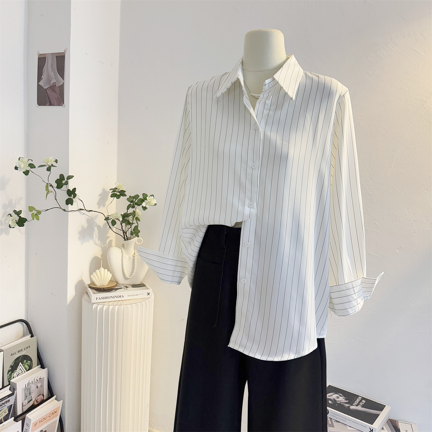 黑色条纹衬衫 2025秋宽松休闲气质通勤衬衣港风叠穿内搭上衣 女长袖