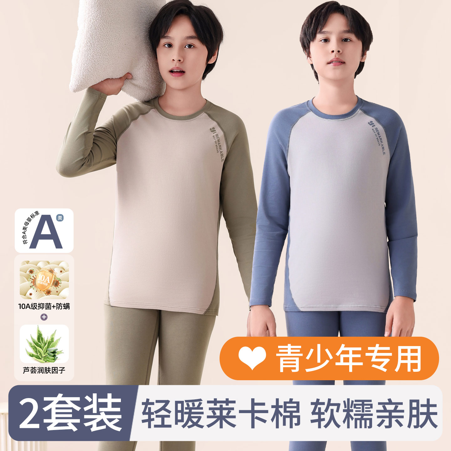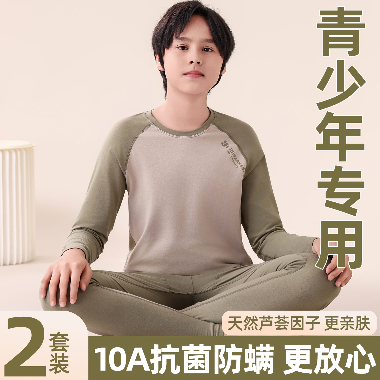 薄款 青少年纯棉秋衣秋裤 内衣初中高中学生抗菌保暖棉毛衫 男士 套装