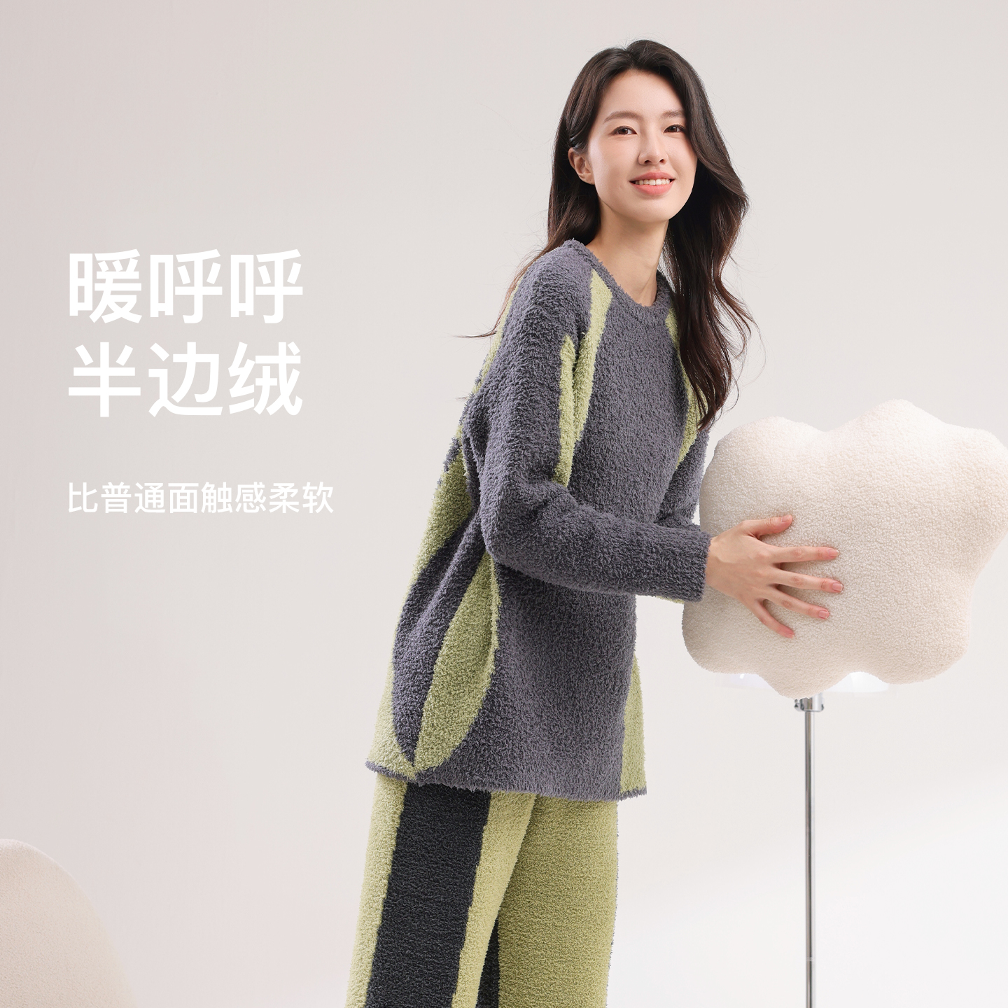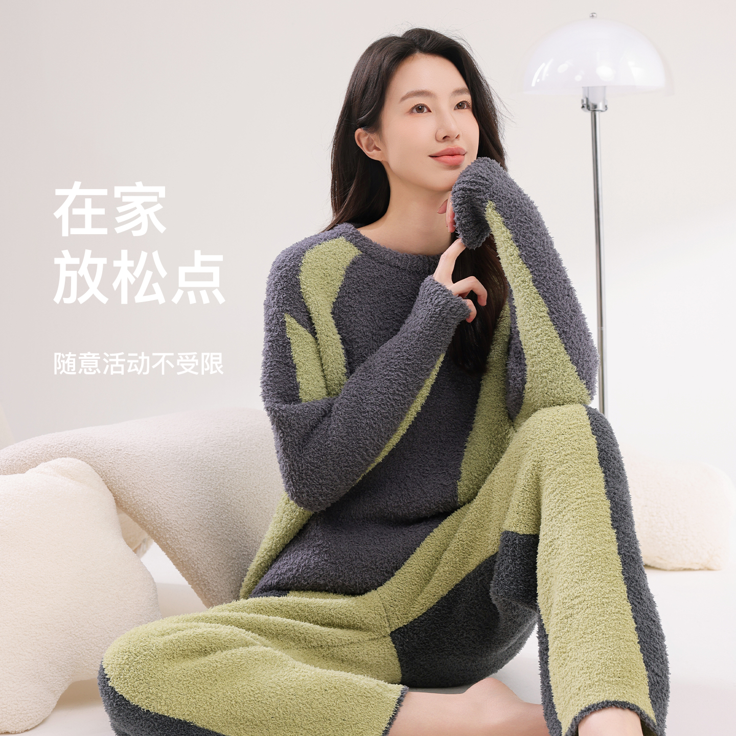 海岛绒可外穿家居服 简约薄款 睡衣女秋冬季 保暖珊瑚绒女士睡衣套装
