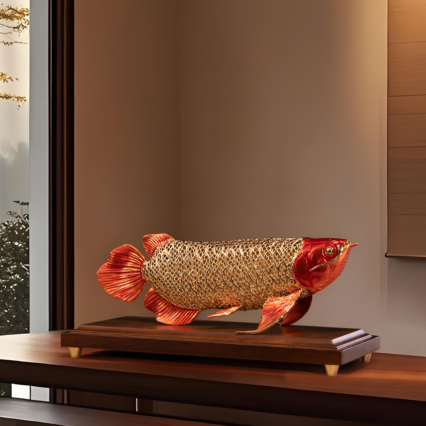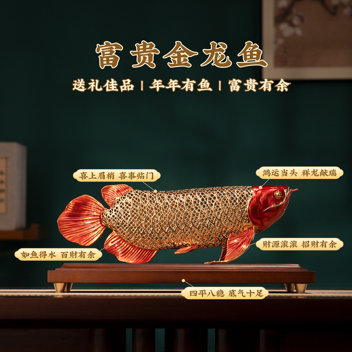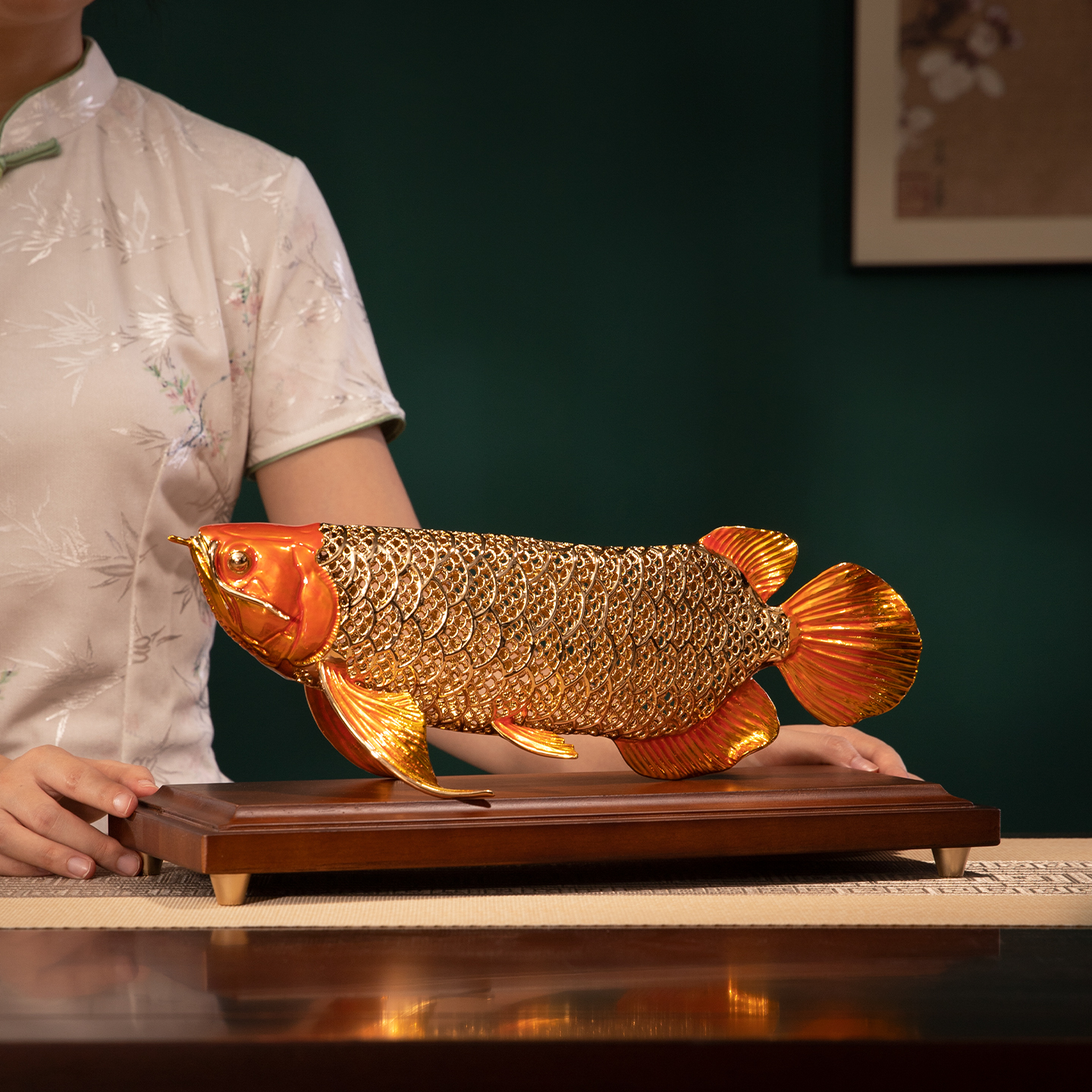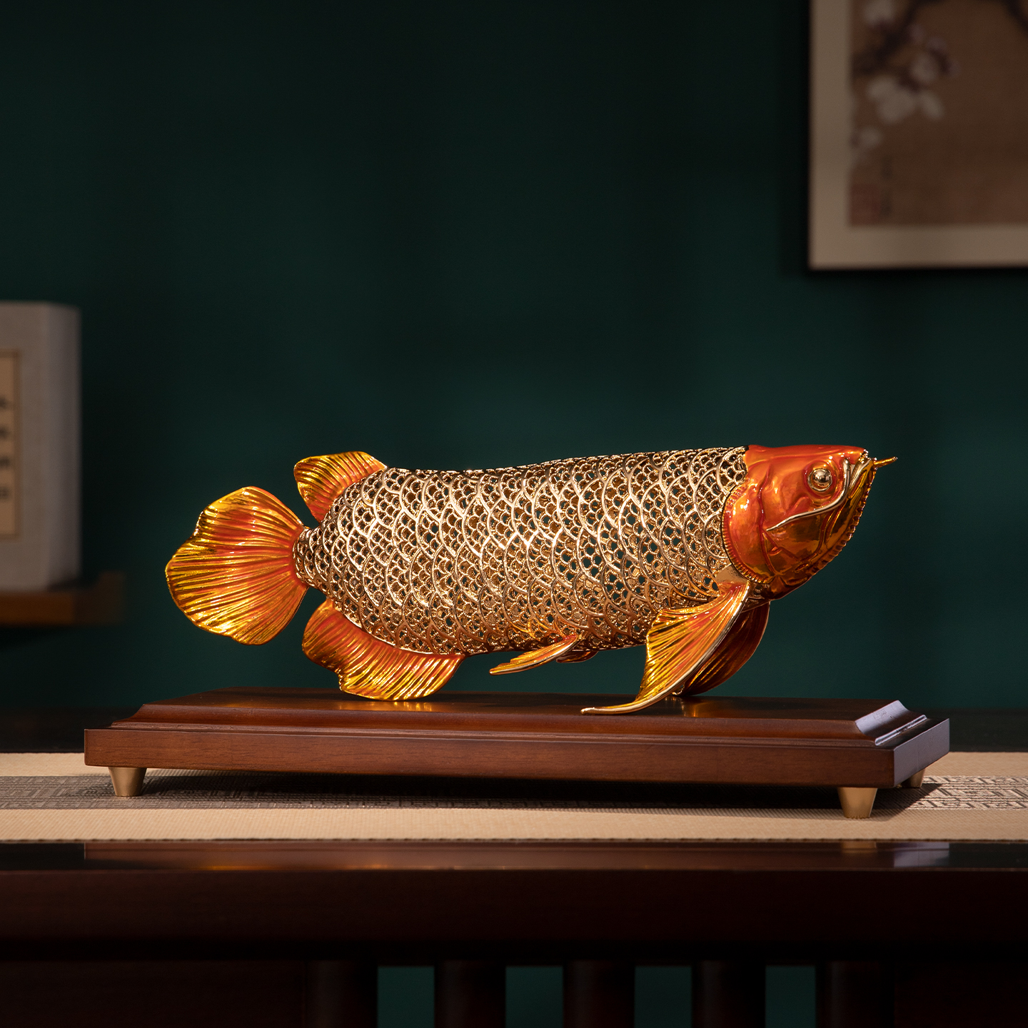 新中式 饰品乔迁开业礼物花丝工艺 珐琅彩金龙鱼摆件送老板办公室装