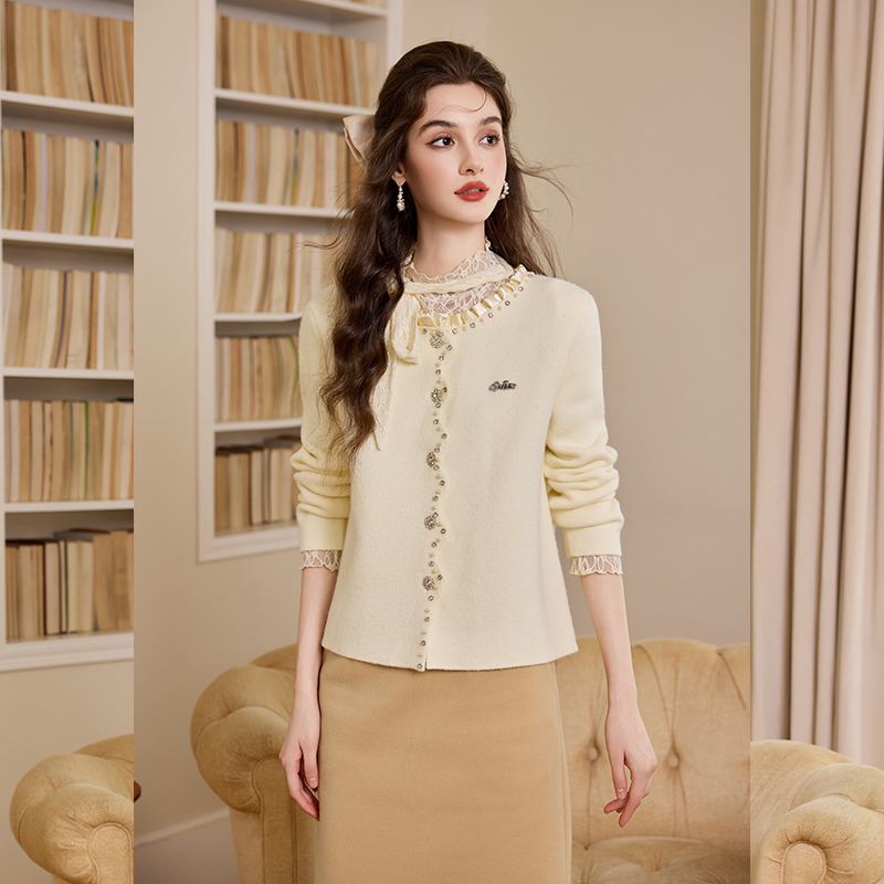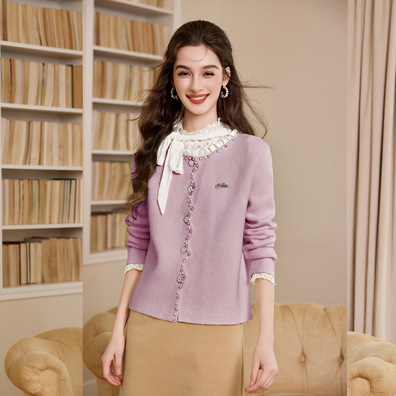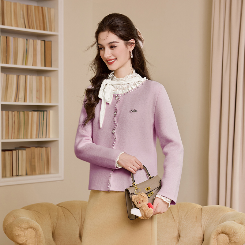 慵懒高级感外套 新款 妖精 口袋复古甜美亮闪v领毛衣女2025年秋季
