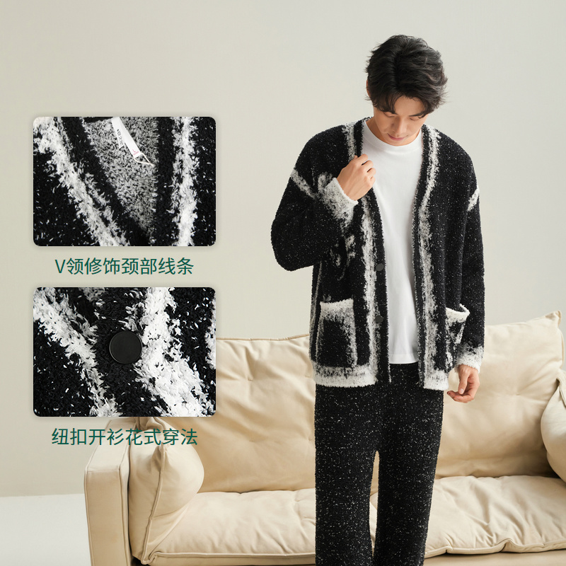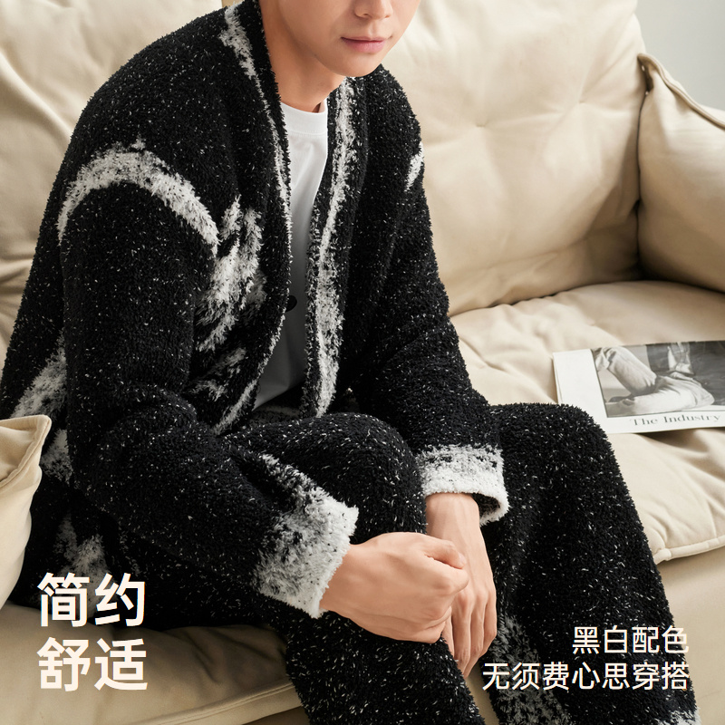 巨保暖 2025新款 半边绒男士 冬款 珊瑚绒家居服 睡衣秋冬季 安之伴
