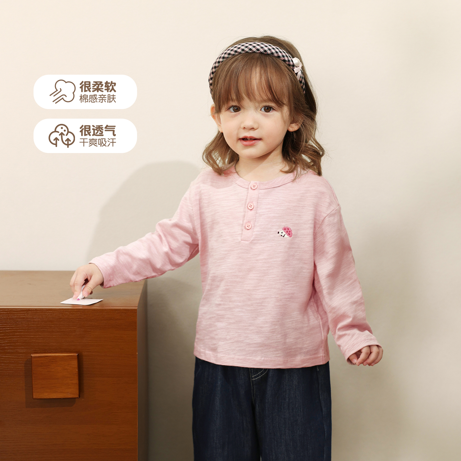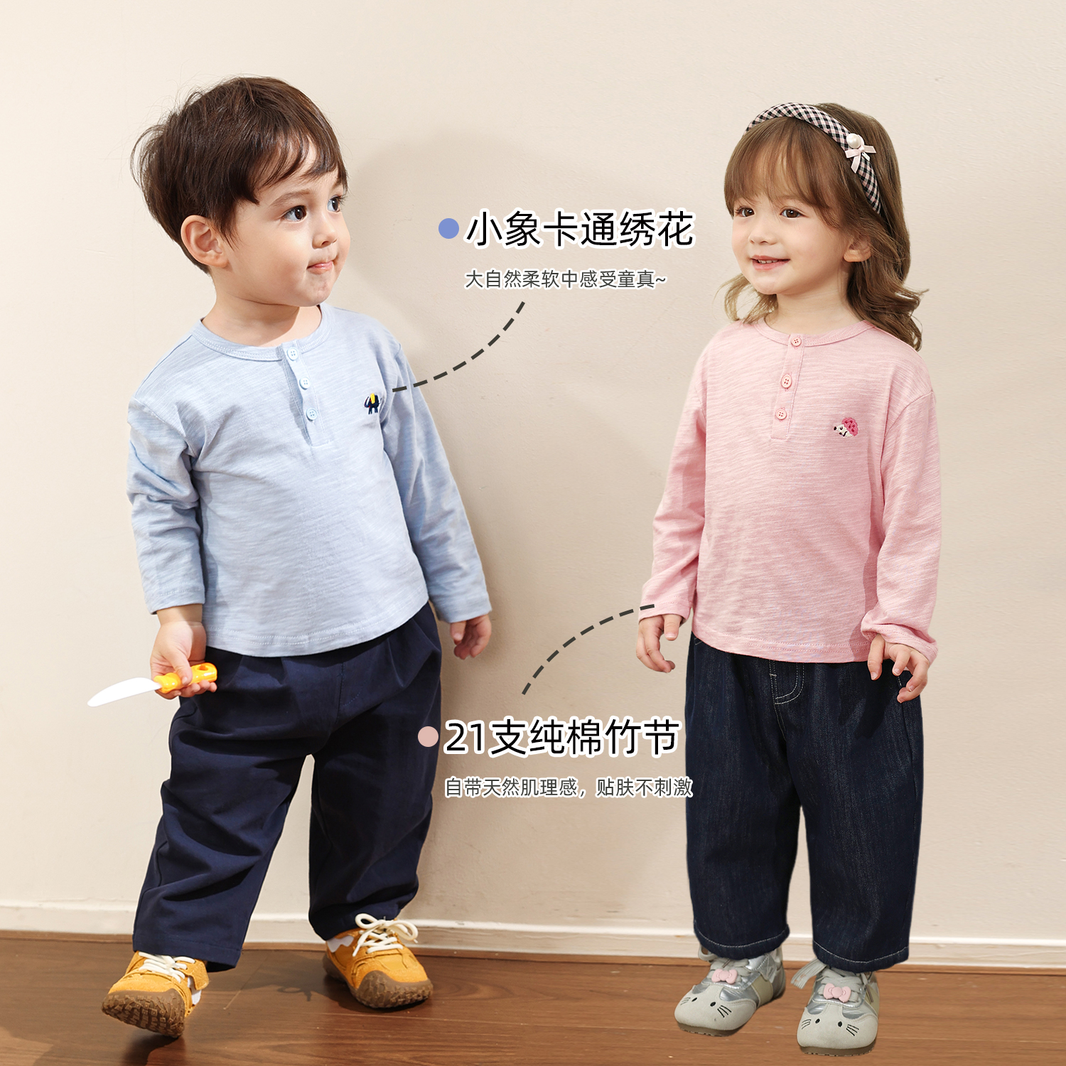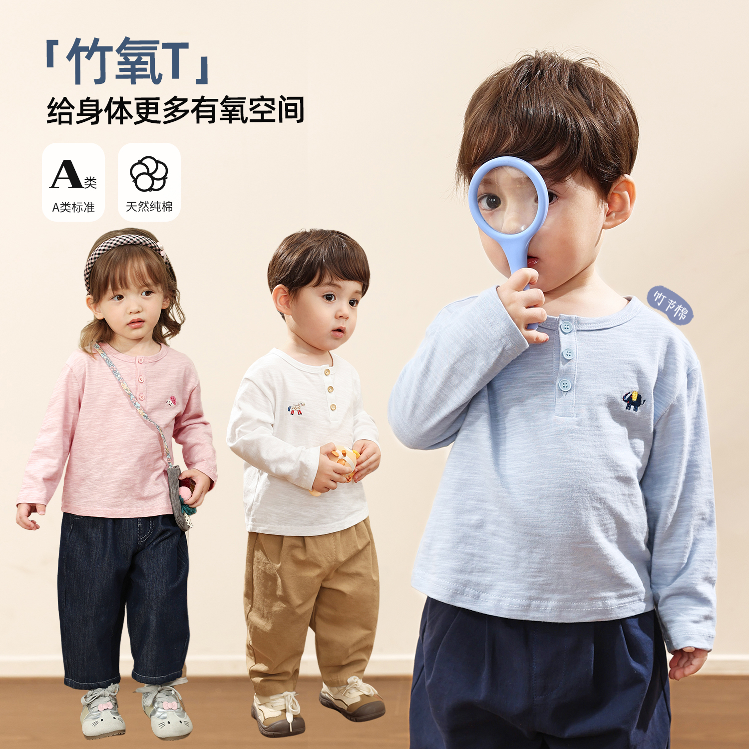 纯棉打底衫 t恤2025秋款 小O爸婴童男女宝宝长袖 婴儿上衣 竹节棉
