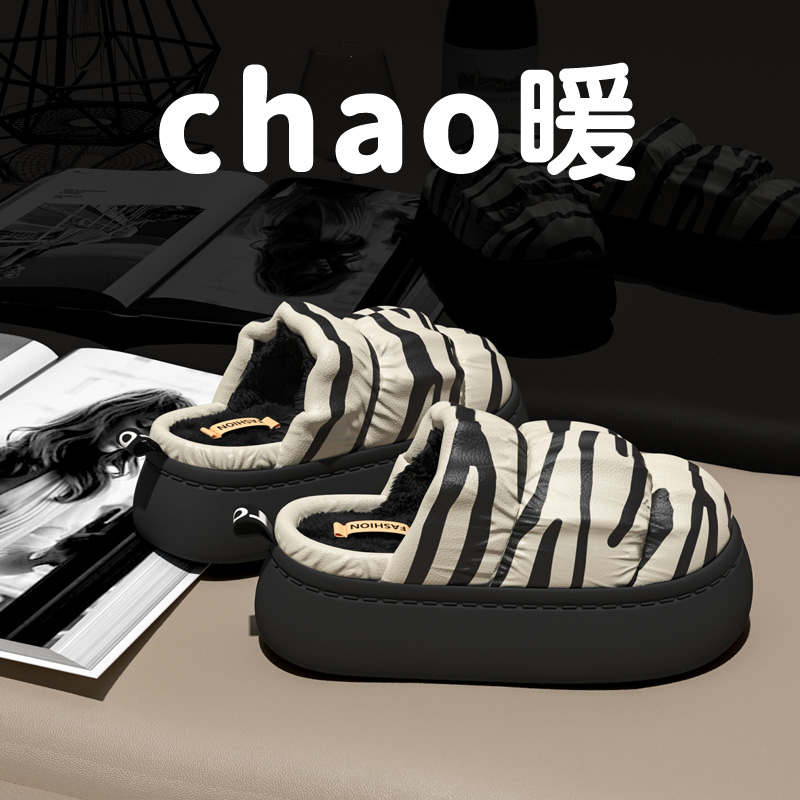 可爱奶牛室内外穿防水防滑加绒保暖家居包头棉鞋 厚底棉拖鞋 女冬季