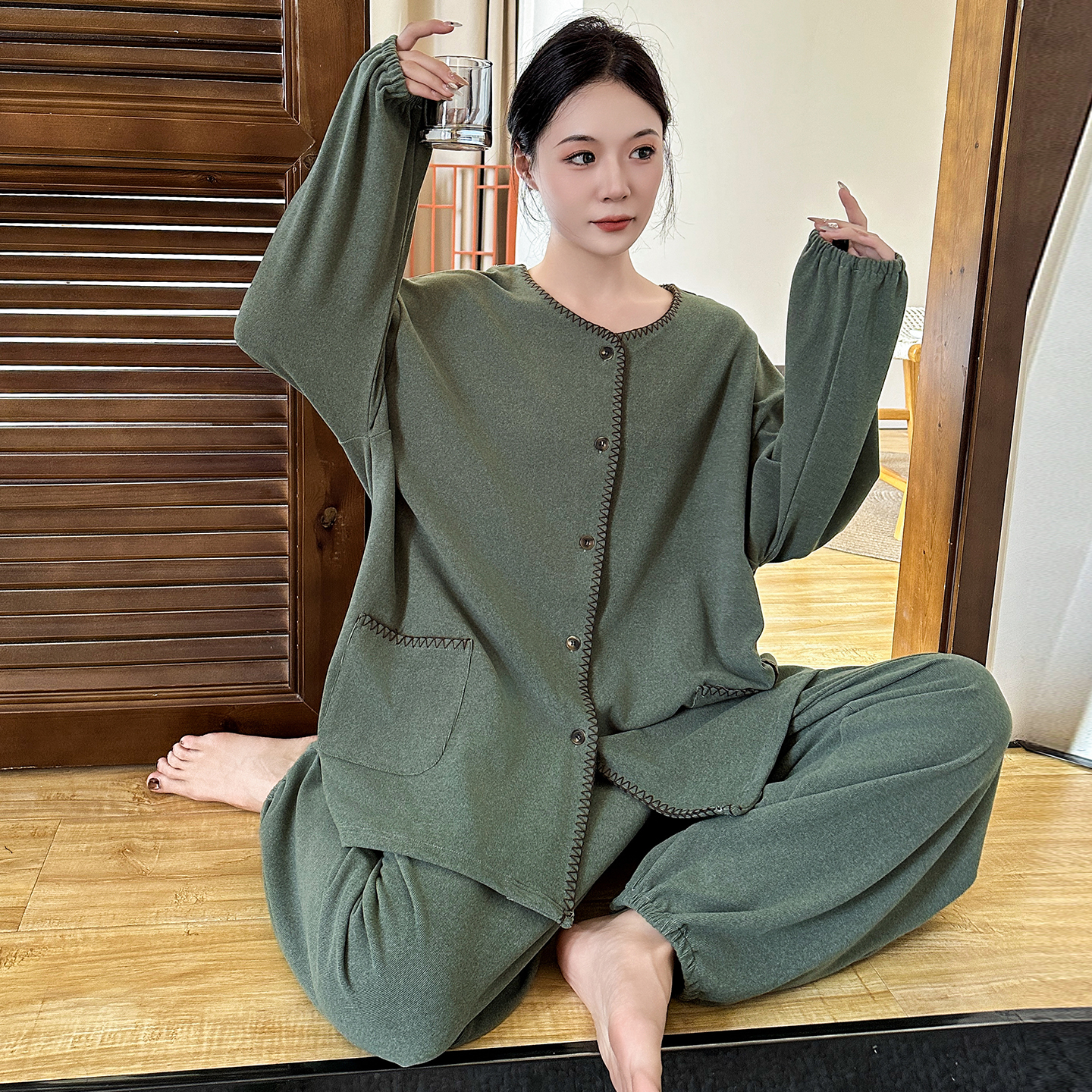 家居服套装 2025年新款 夏天棉绸长袖 薄款 空调服 春秋绵绸睡衣女夏款