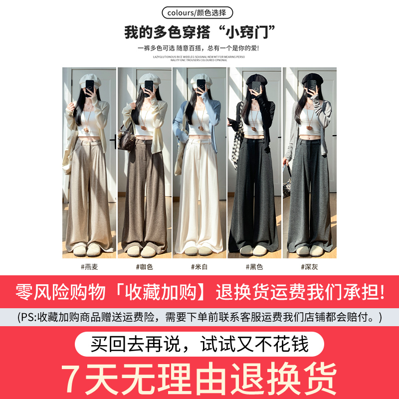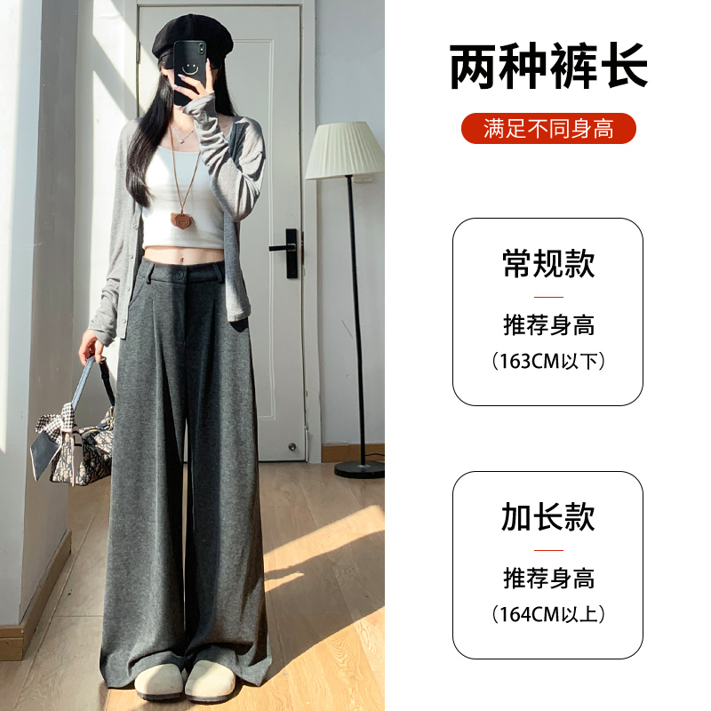 高腰休闲垂感秋冬加绒直筒阔腿裤 女春秋2025新款 裤 深灰色糯米西装