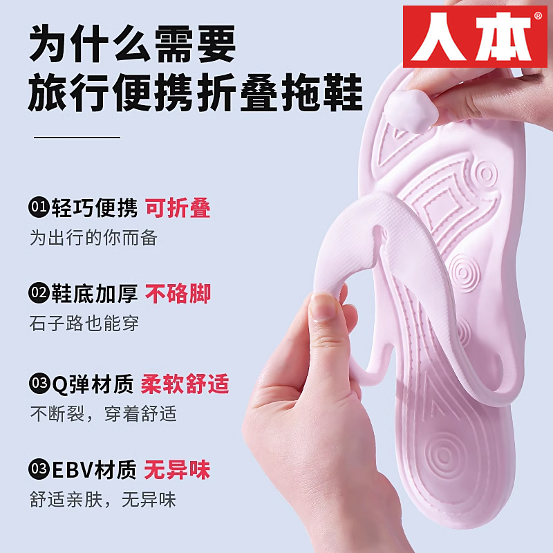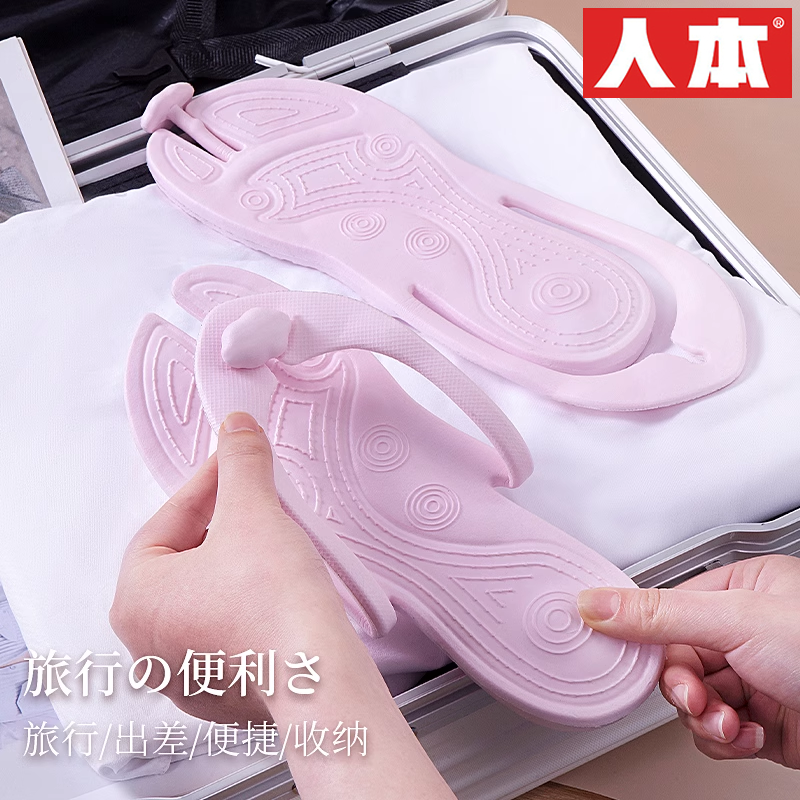 男防滑 旅游拖鞋 人本折叠拖鞋 女可拆卸出差旅行便携沙滩人字凉拖鞋