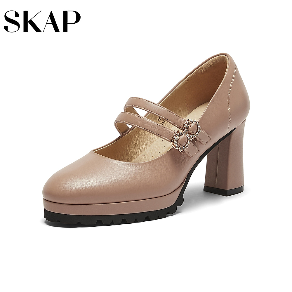 配裙子粗跟浅口单鞋 大东玛丽珍鞋 高跟小皮鞋 2025春夏新款 0108 女鞋