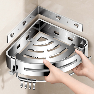 304不锈钢卫生间浴室置物架三角墙上淋浴房转角架子免打孔洗澡间