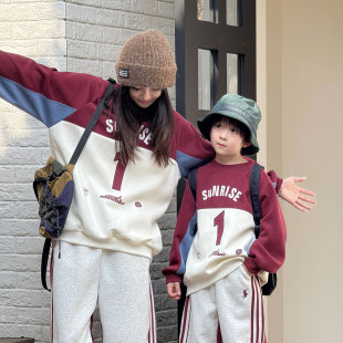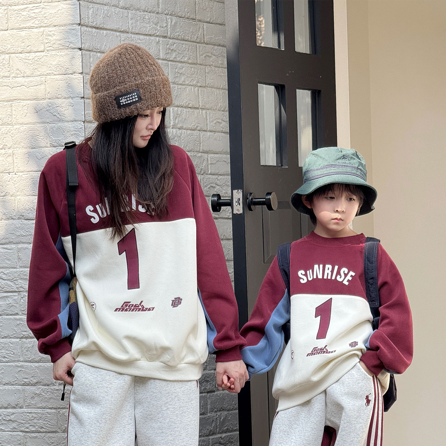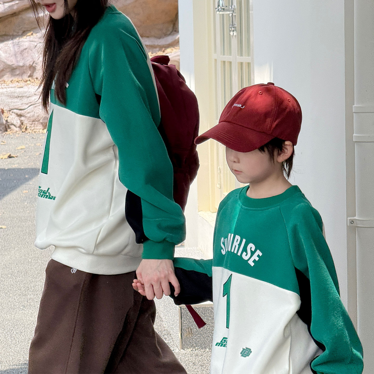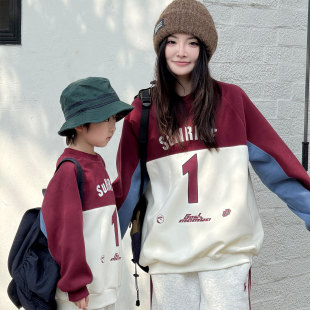一家三口四口母子韩版 亲子装 拼色 母女秋冬卫衣不一样 2025新款