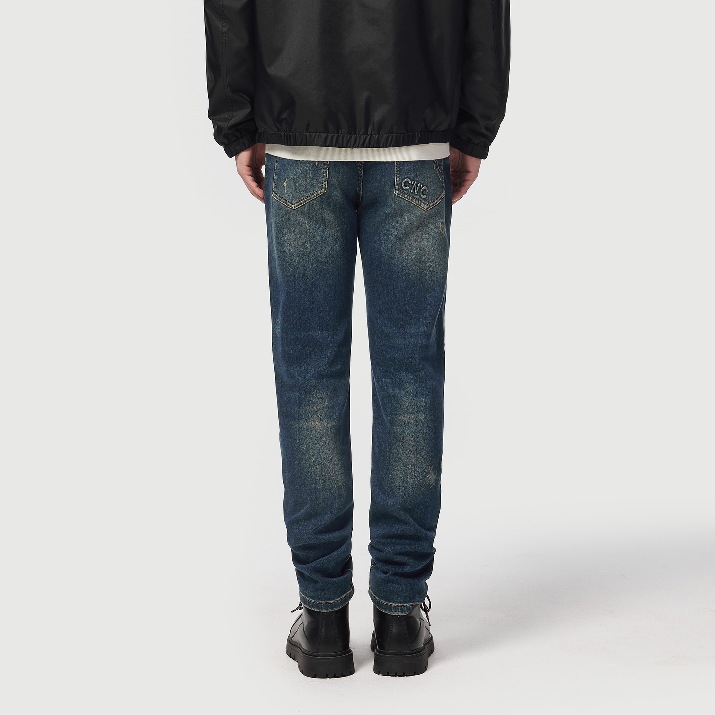 2025冬新款 王安宇同款 宽松弧形裤 男做旧复古阔感弯刀裤 森马牛仔裤