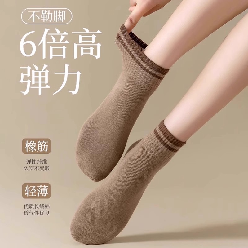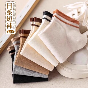 袜子女春秋季 吸汗透气中筒袜女士全棉运动袜 纯色防臭短袜2025新款
