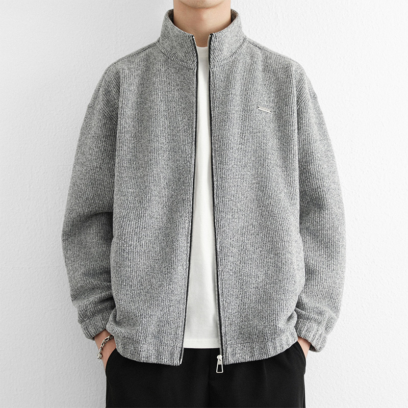 上衣潮秋冬针织 青年夹克开衫 URSBOB男士 立领外套百搭休闲宽松长袖
