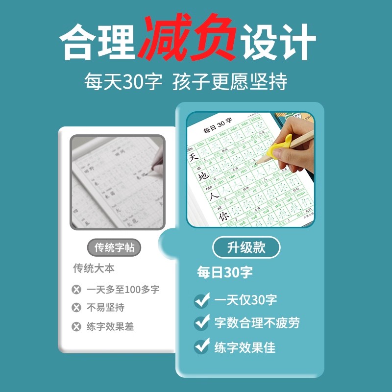 减压字帖一年级点阵练字帖每日30字小学生一二三年级上下册点阵控笔训练字帖每日一练人教语文笔画笔顺描红专用练字本硬笔书法