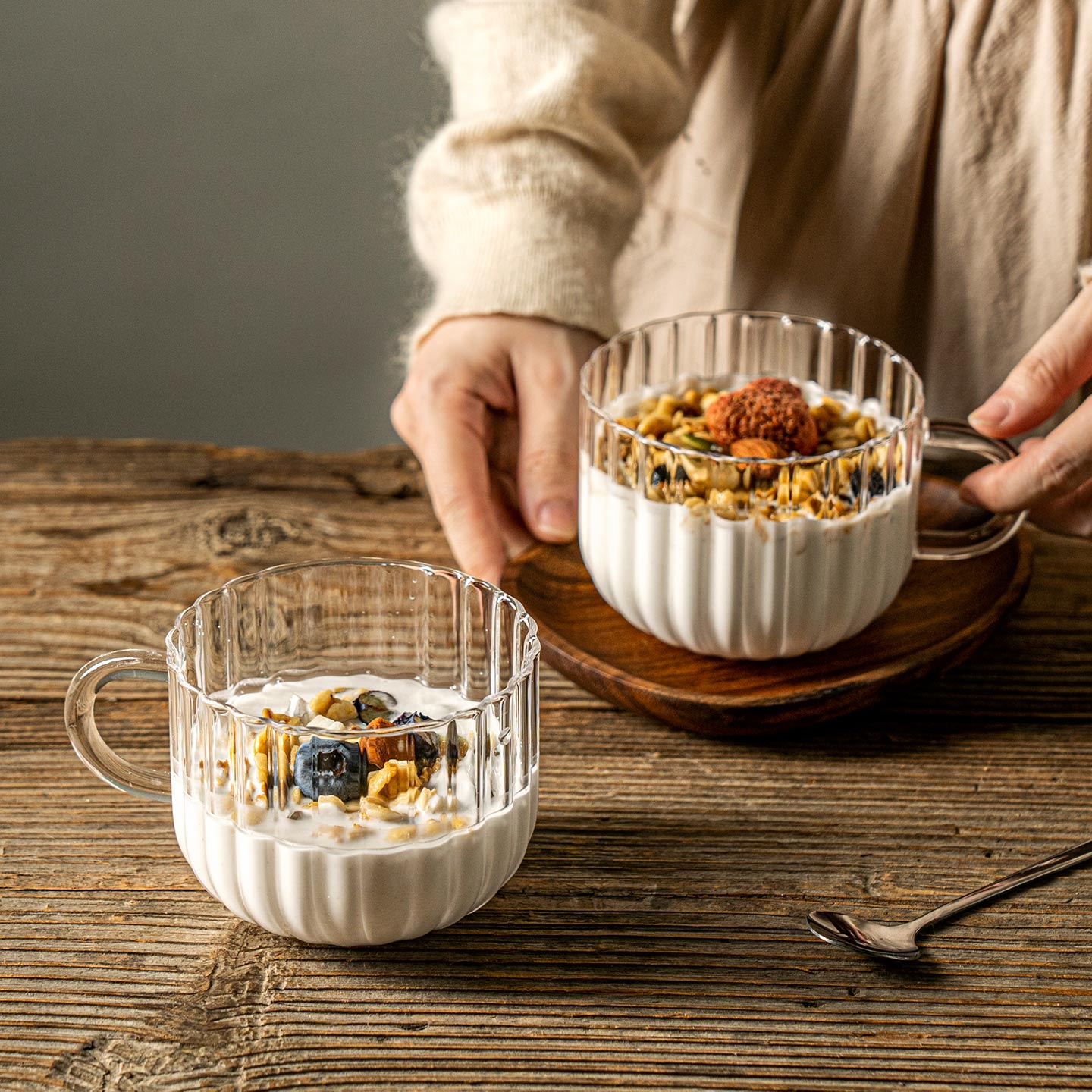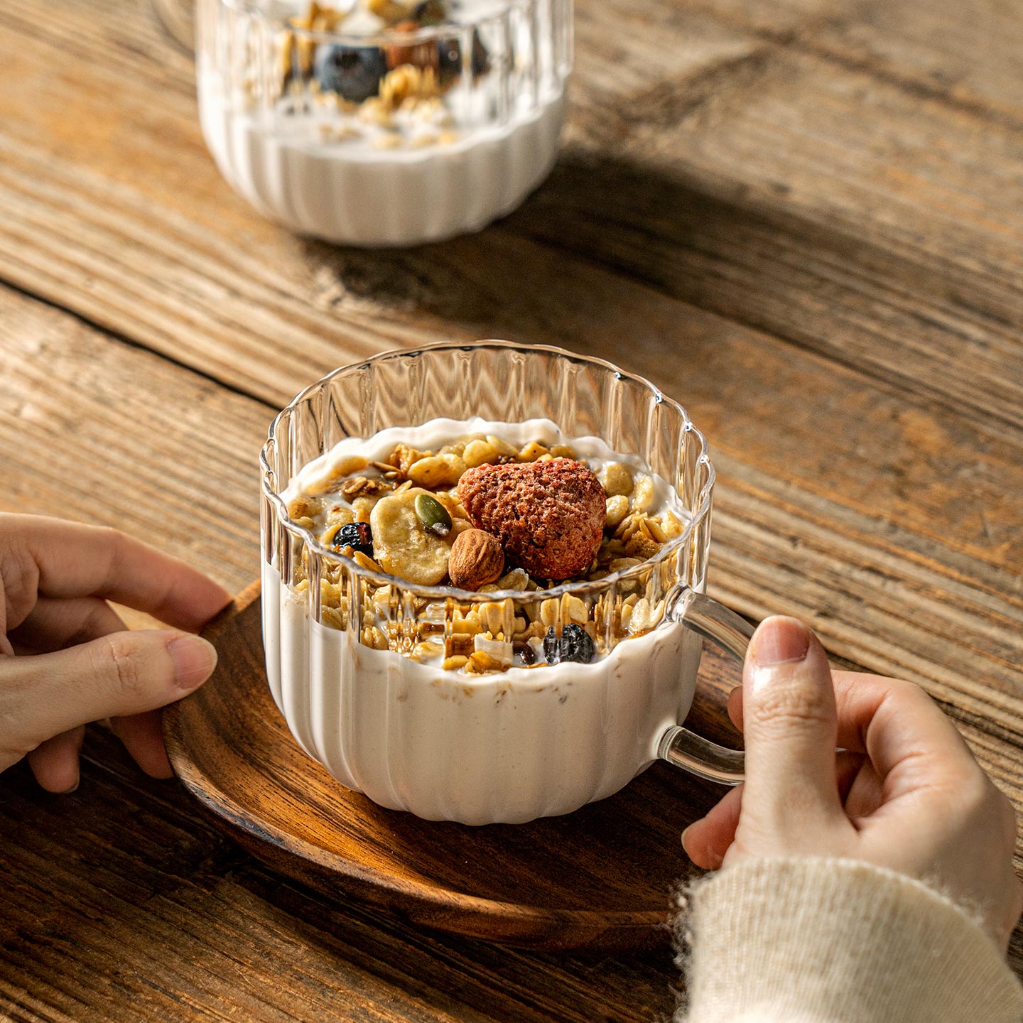 咖啡杯玻璃早餐杯牛奶燕麦杯可微波炉酸奶沙拉碗高硼硅水杯带把手