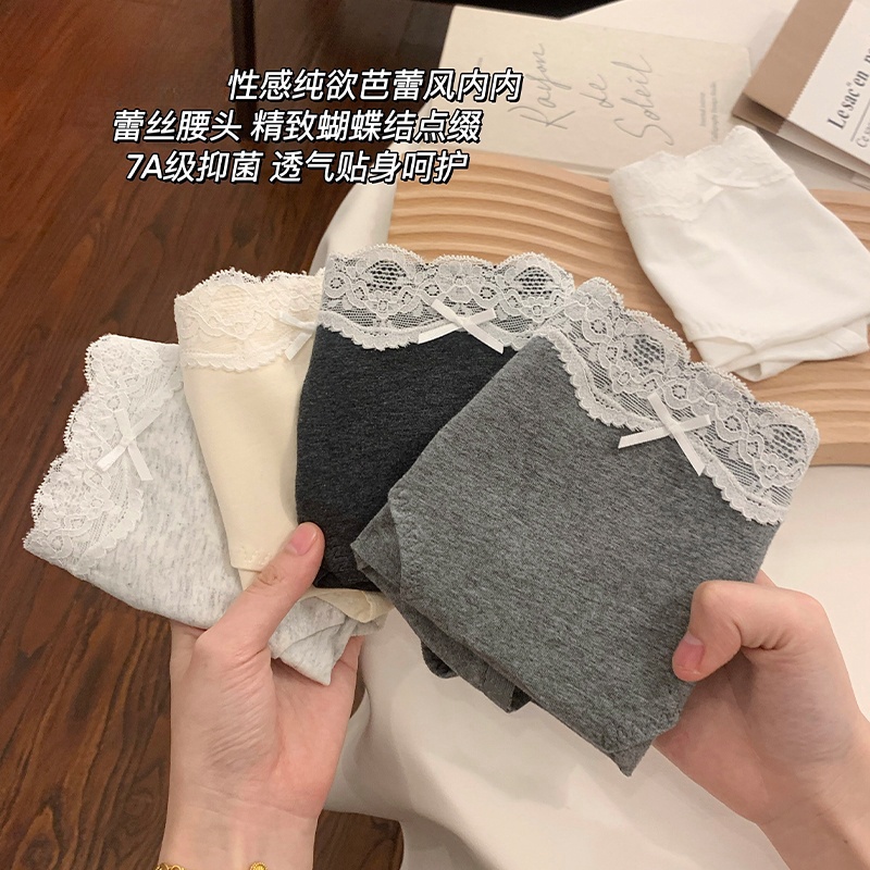 头 底裤 内裤 女纯棉全棉7a抑菌少女生学生蕾丝中腰舒适柔软三角短裤