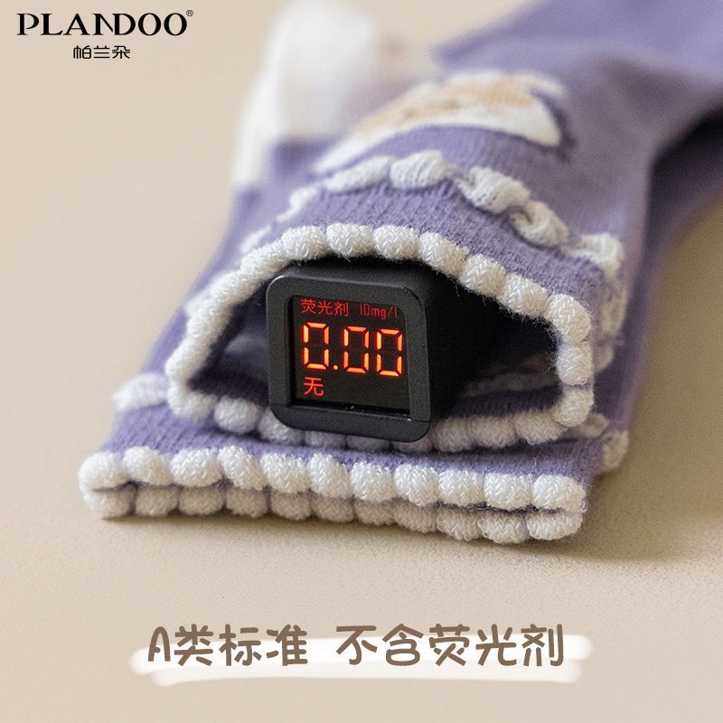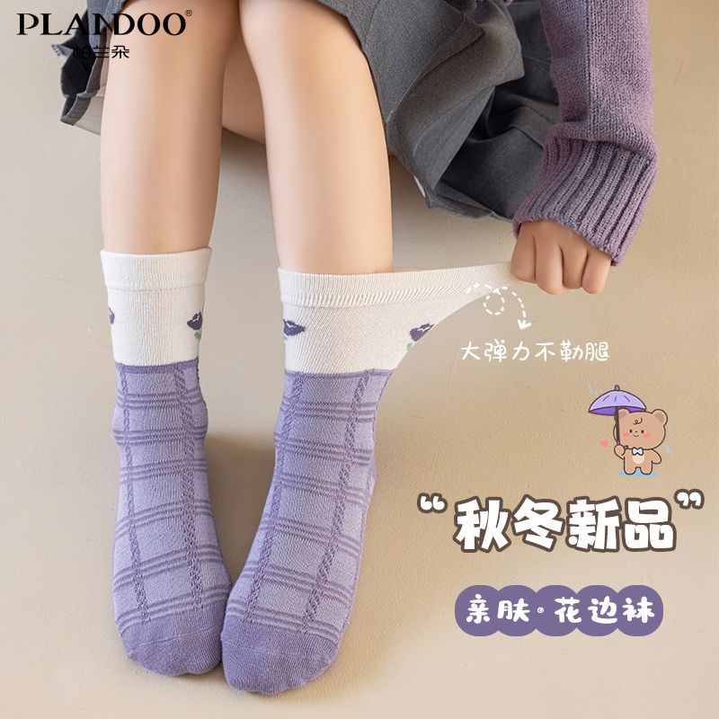 帕兰朵女童袜子韩版 中筒卡通紫色系高弹力不勒腿简约早秋舒适童袜