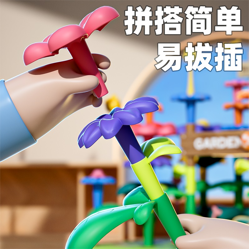 百变积木花园拼装 3岁生日礼物diy插花 益智大颗粒玩具宝宝女男孩1