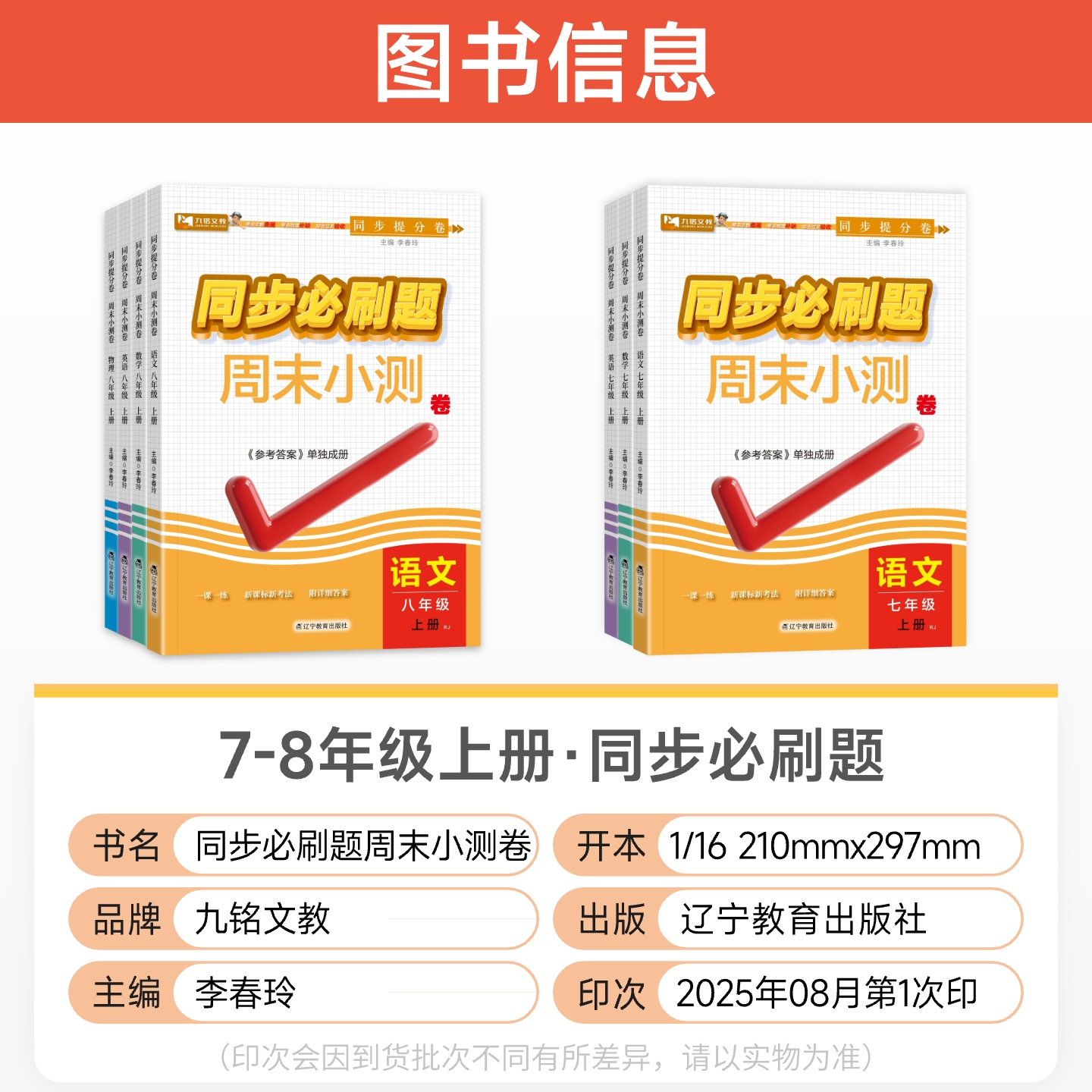 2025版 同步教材专项训练测试卷小四门练习册 初中同步必刷题周末小测卷七年级八年级上册数学语文英语政治历史生物地理物理人教版