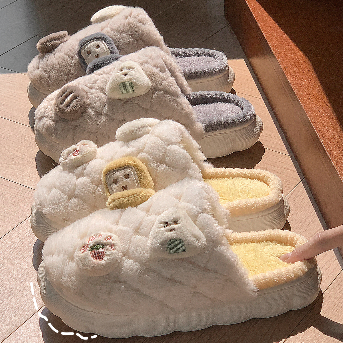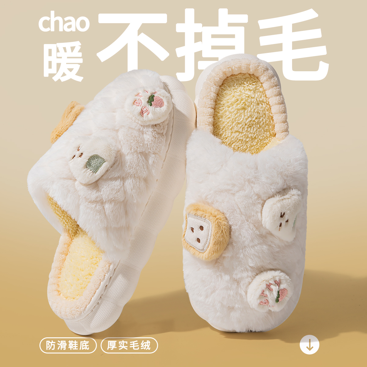 可爱居家居室内情侣加绒加厚底毛毛拖鞋 男士 2025新款 冬季 女 棉拖鞋